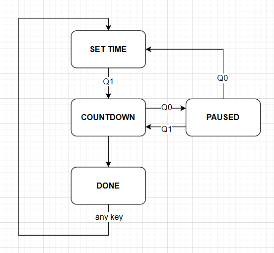 is more special. I want to calculate show_time based on the time elapsed since the user clicked start, to minimize error from weird calculation methods, but since the user can pause then resume, we need to know the time showing on the display when the user last clicked resume.Whenever we transition into a COUNTDOWN state, we also need to set a variable called start_millis