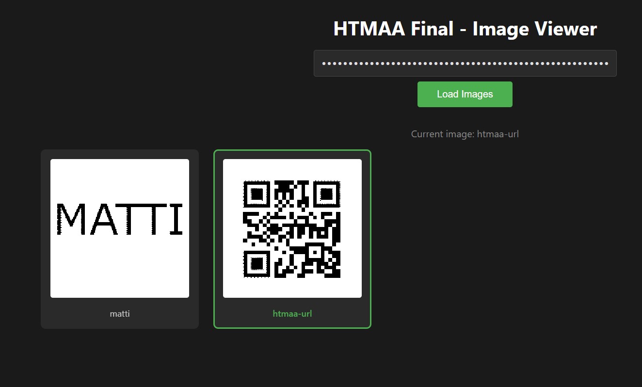 This is what the final experience looks like. As you can see, the selected QR codes are sent to the e-ink screen as per the documentation for last week’s assignment.