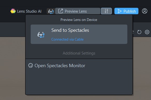 You can then connect the device to the laptop via USB-C cable and it should show up automatically in your Lens Studio session. If it doesn’t, go into the companion app on your phone and enable the wired connection in the Developer Settings. To start using a Spectacles device, you’ll have to pair it with a phone initially and all future administration of the device is done via the Spectacles app.