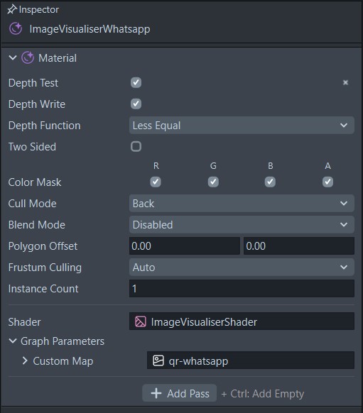 The shader setup can be seen in the following images. Again, it’s very simple for this application but I like that Lens Studio has this feature.