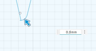Acute corners and round lines are trickier. The round lines consists of multiple linear segments. That makes it impossible to create fillets of larger sizes (the fillet “overlays” multiple of these segments). I remove those additional small segments and add a single longer line that connects to the corner where the “O” meets the rectangle it sits on. That allows me to add a fillet to that point.