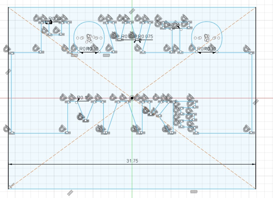 Now we have a clean path, but when generating the machine paths and simulating the g-code, the machine complains about a whole lot of things. We eventually realize that we didn’t scale the figma design after bringing it into fusion. We had always applied a 1/25.4 scaling operation on the machine to get it to the right size. That obviously also causes the fillets to get smaller. They seem to get too small for the machine and it complains.