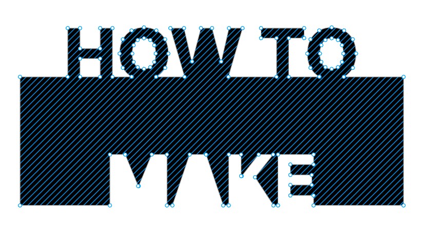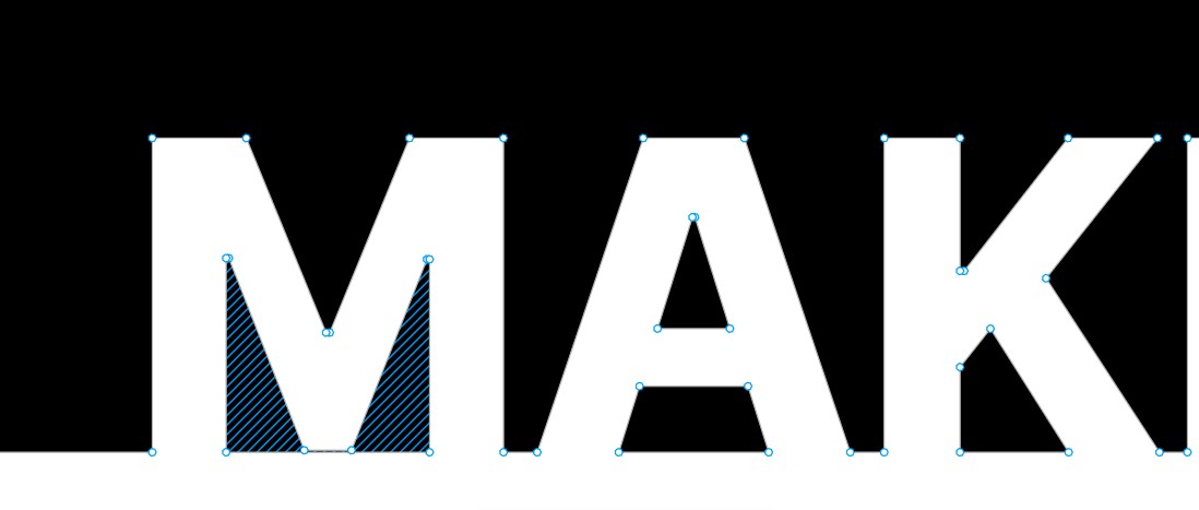 The image below shows what that looks like once all the shapes for the lower text (“MAKE”) are cleaned up. I proceed to do it for the shapes that the top, as well.