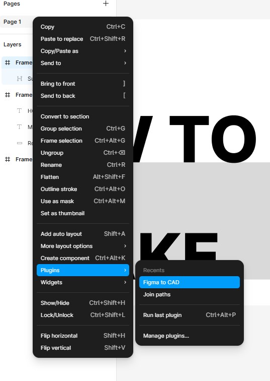 I use the “Figma to CAD” plugin to export the design to a DFX file. The result can be downloaded on the right.