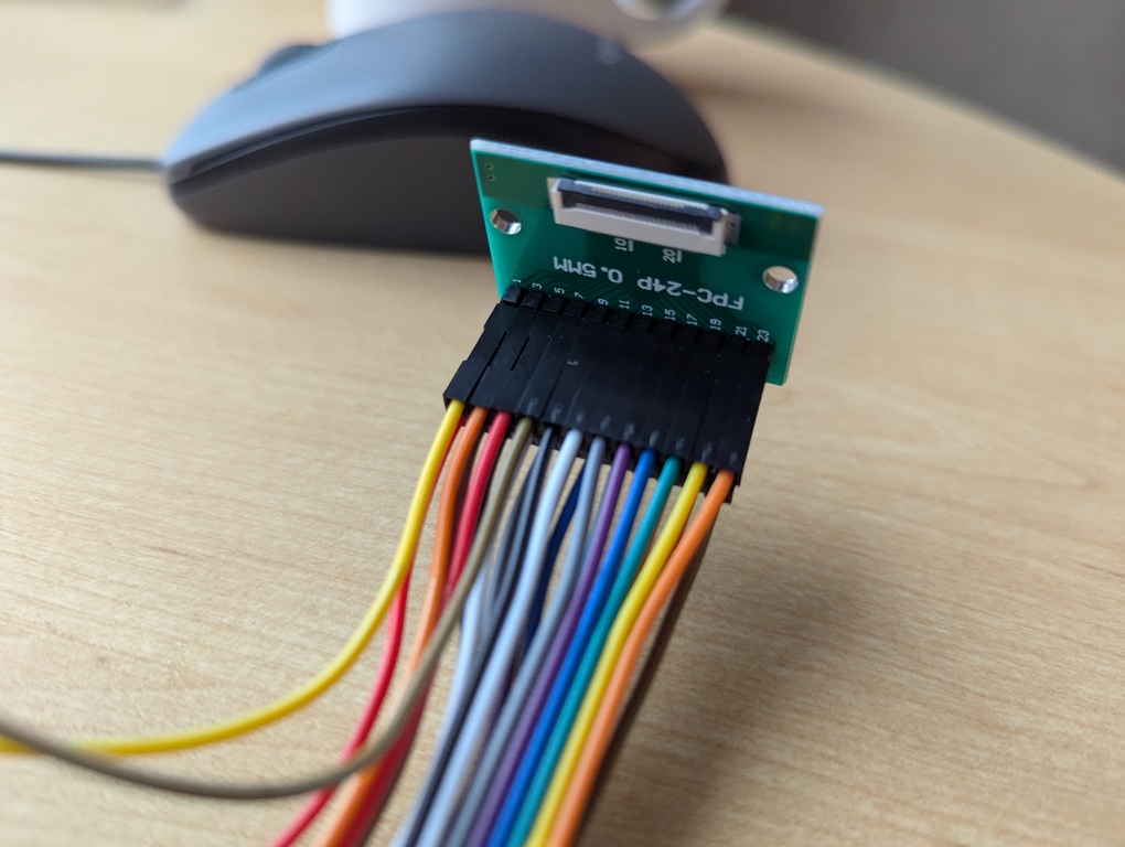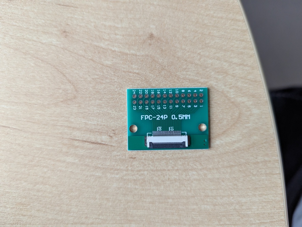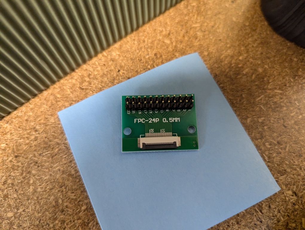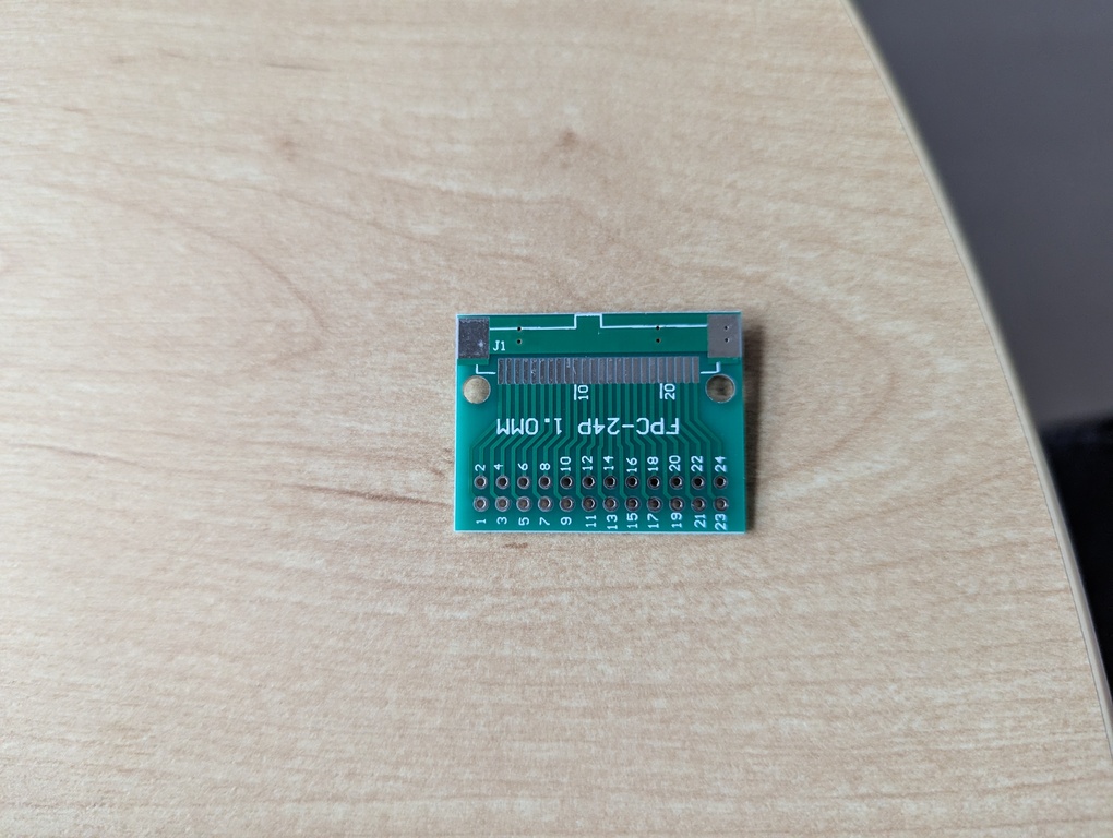 I want to also call out a “problem” I noticed on that breakout board I bought. When I did continuity tests with the volt meter, I used the bottom side of the board because it has exposed pads there. Note in the images that the labeling of the holes is NOT consistent between the top and the bottom. I had a brief chat with Ceci about it and we concluded that they probably use the board for FPC connectors of different widths (wider connector on the bottom side) and that they don’t expect the user to correlate the pads on the bottom to those on the top. The bottom and top should be thought of as 2 separate boards. I’m pointing this out because it took me a minute to understand why my continuity test wasn’t successful when I first tried it. The problem was that I was testing pad 1 instead of pad 24 because of the inverted labeling.