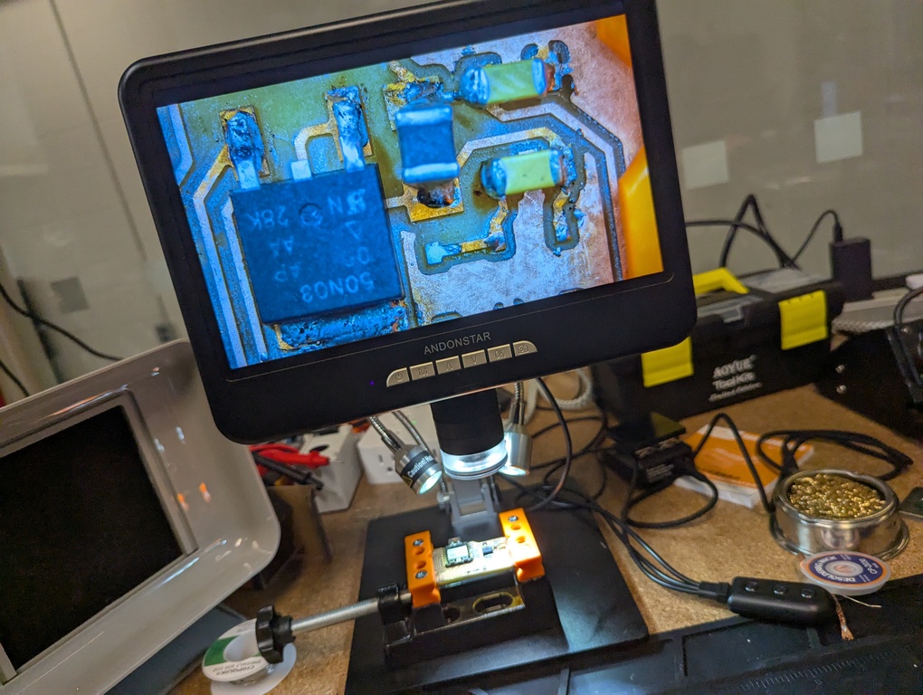 I also had a problem initially with the mosfet heating up a lot. The culprit was a short caused by a bit of solder that connected one of the resistors to ground. It also prevented the LED from lighting up initially. Luckily, the short didn’t cause any other problems and I caught it relatively quickly. It was resolved quickly with a bit of desoldering wick.