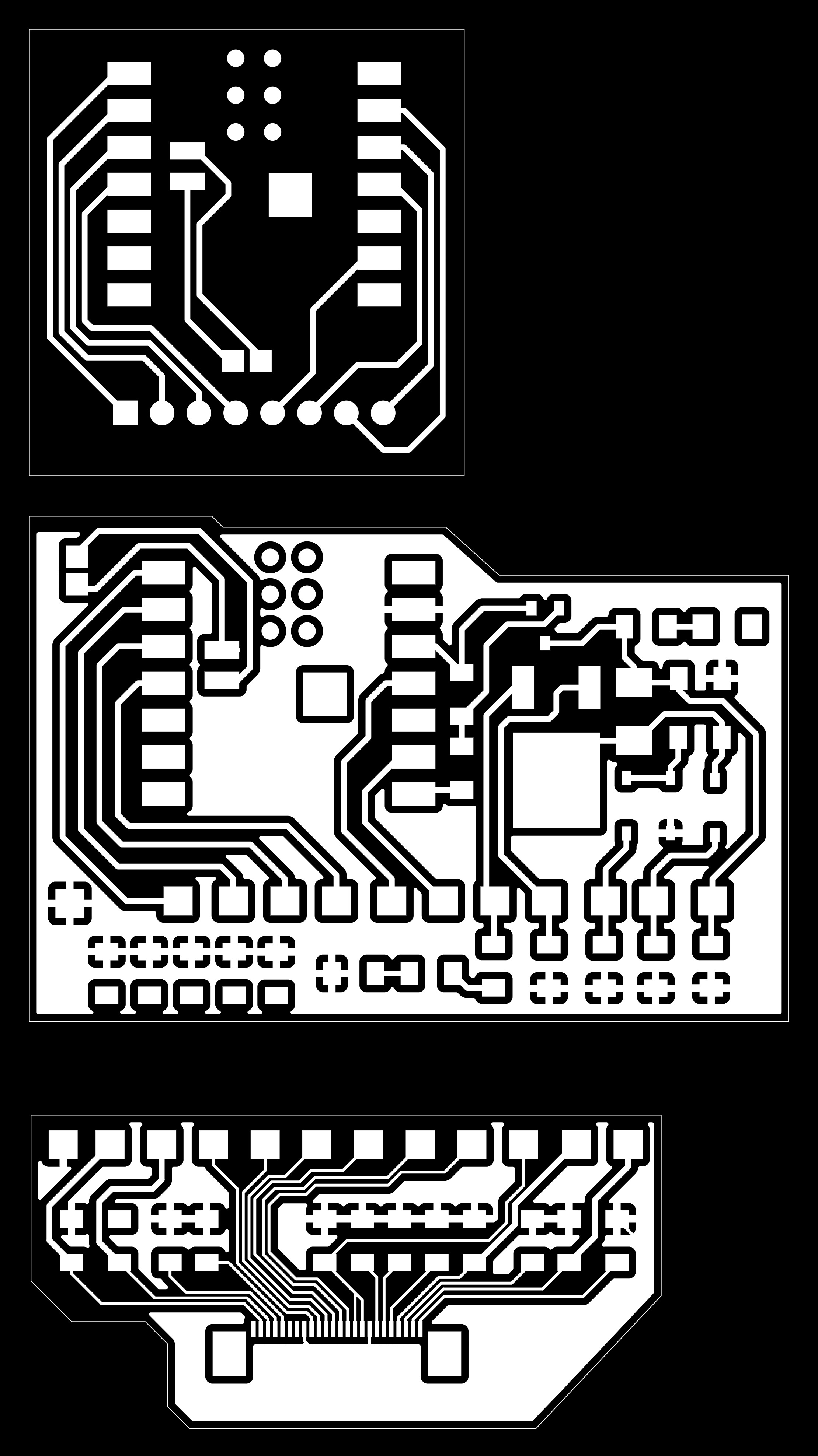 As shown in the image, I have multiple boards in my KiCad file. Since the Carvera milling process that we use is based on images, which get processed into gcode, I am able to use this sort of setup without too many problems. I exported the gerber files from KiCad and processed them into the images shown below that show all 3 boards. Using Gimp I then cropped out the board I wanted to make and discarded the ones that I wasn’t ready for and didn’t want to make. The process is simple, but I found that it’s easiest to
