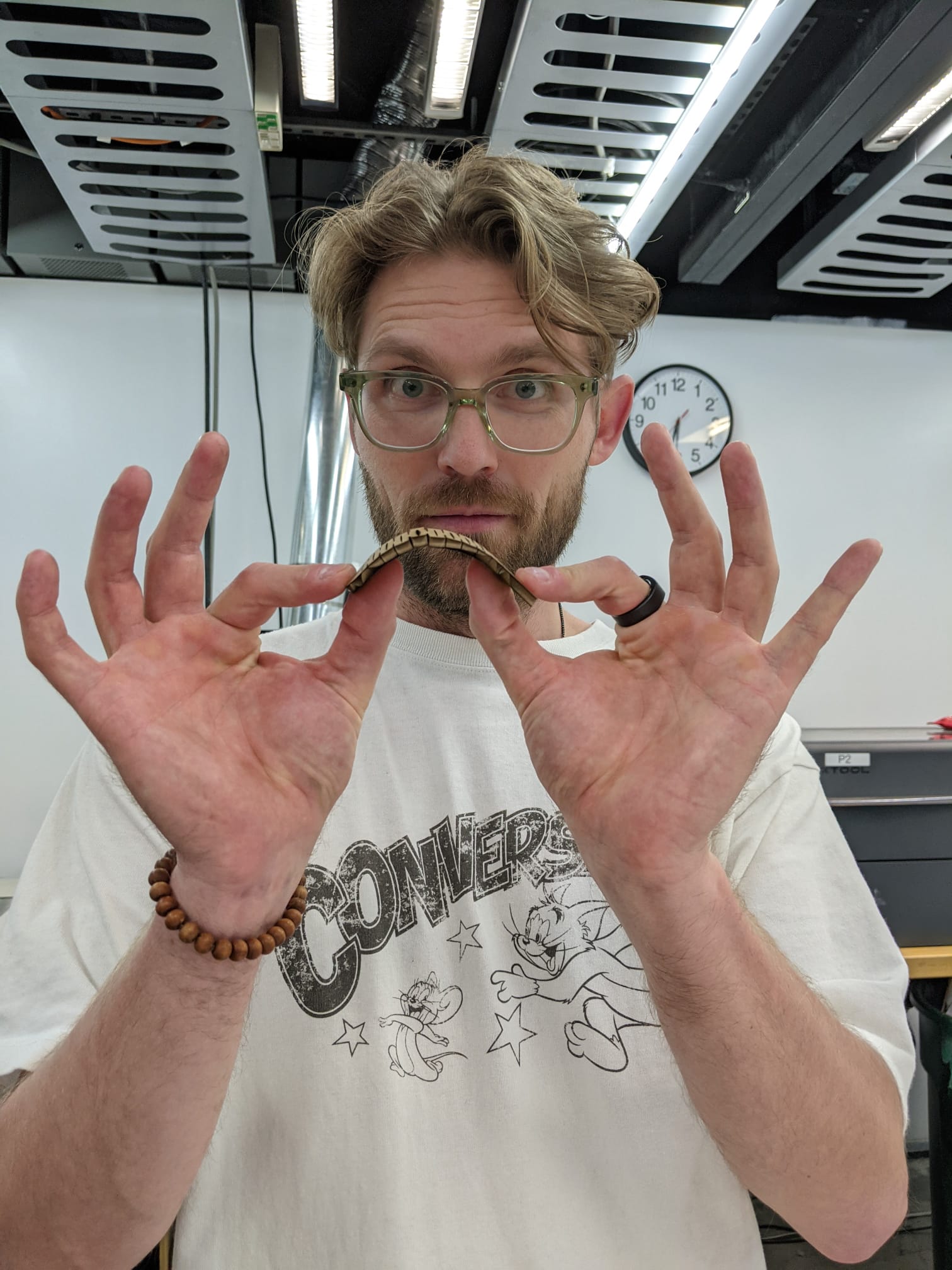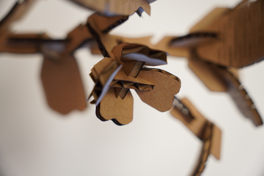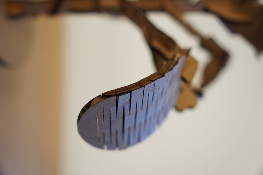 When I first saw the living hinges and patterns that allow for certain movements of the material, I was wondering how I could do true 3D structures (not just a bend in a single axis). I was wondering if I could make a leaf that, when adding a weight at the tip, would bend in the main axis but then as a consequence also pull up the sides. The below picture of our beloved pathos plant illustrates what I was hoping for. I quickly realized that I don’t know where to start when it comes to simulating the effects of cut patterns and abandoned the idea of truly 3D leaves. It’s still a question that’s spiraling around in my head, though.