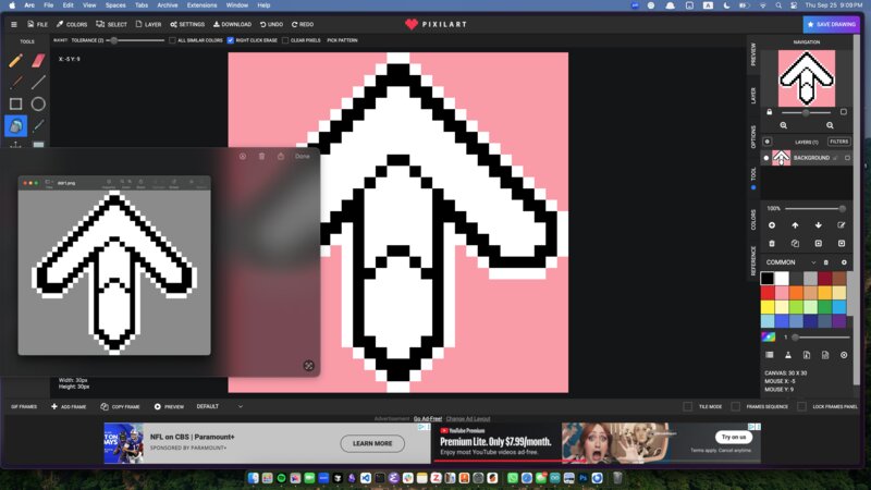 After doing some research I found that importing images into Arduino requires converting them into bitmaps. I found a tool called image2cpp which does the conversion. Since the resolution of my display (128px by 64px) is smaller than any of the DDR arrow images I was able to find online, I decided to use a pixel art tool to draw my own, using an image of a pixelated DDR arrow for reference.