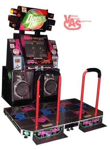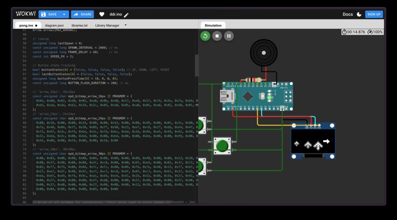 In order to scope out the project I triangulated some reference photos of real-life DDR machines, like the one below, to draw out the minimum set of features necessary for my tiny DDR machine.