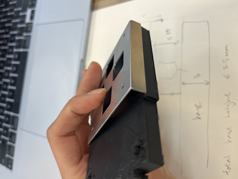 I tried several iterations of the 3d printed base. The first one was too large for the metal part. I ended up going with a design that is skinny all around so that I have plenty of clearance.