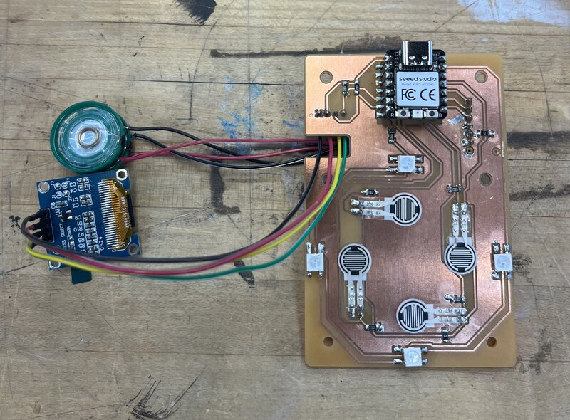 Throughout the process, I referenced demo code and circuit schematics (e.g. from Neil or Adafruit) for testing or developing different atomic components (e.g. capacitive touch, FSRs) which I link to when I describe their implementation. My most valuable resources were the CBA TAs: Quentin, Alfonso, Jake, Alan, and Dimitar (who I suppose was a student) in particular. I truly cannot overstate my gratitude for them! I learned so much from them and deeply appreciate their patience for me while I was in a truly frazzled state. I used Cursor for AI-assisted coding.