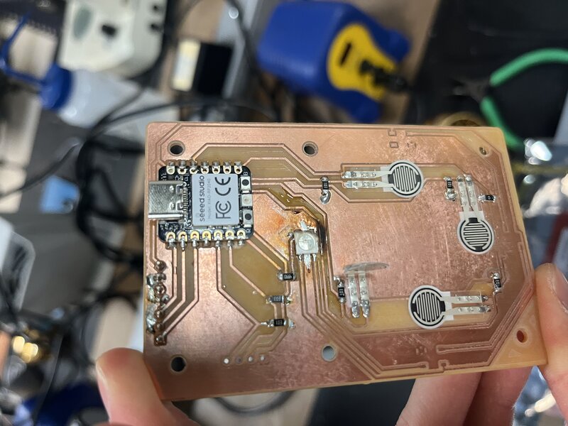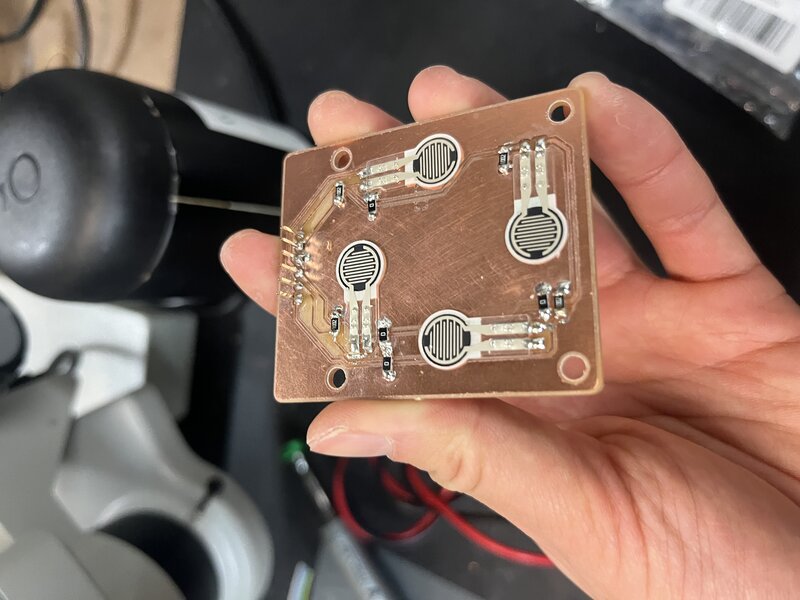 I still found this board to be not as reactive as I would like, and I was running out of time to innovate on it given my limited experience with EE. So, in the name of Supply-Side Time Management, I went to my fallback option: force-sensitive resistors.