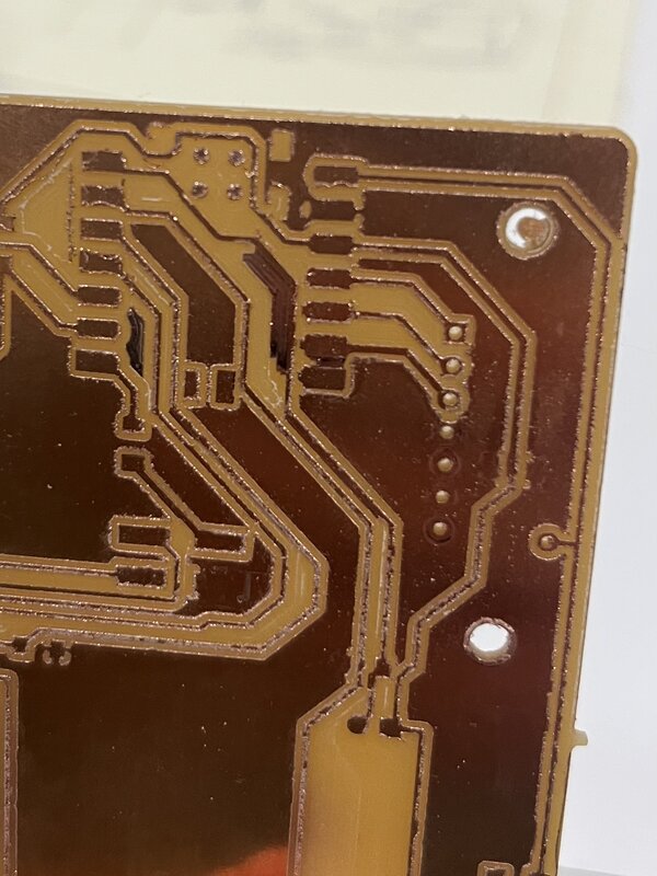 While milling this board, I didn’t sufficiently clamp / double sided tape my stock down, and parts of the board were incompletely milled.