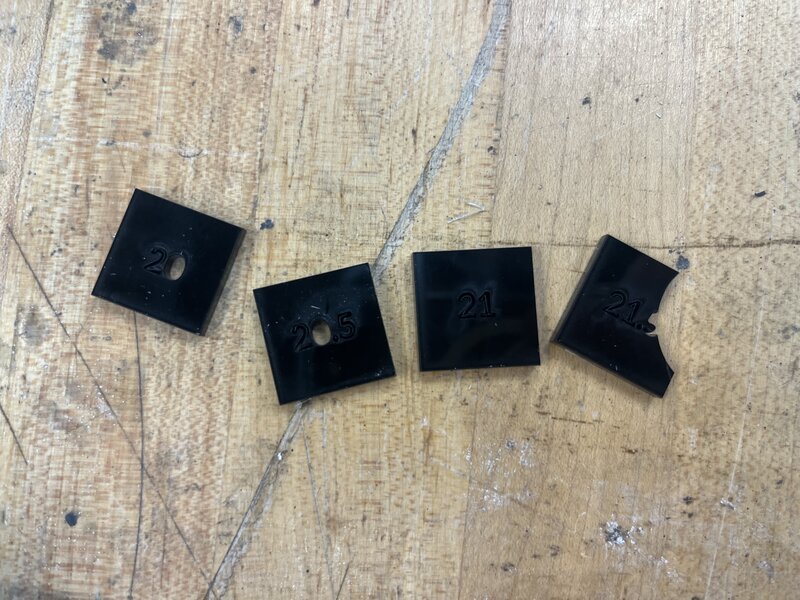 Next, I learned the hard way that one must kerf test their material before attempting a press fit. I kerf tested the black acrylic, and then had to kerf test it again when I switched to black acrylic of a different thickness – I learned from Ceci that acrylic shrinks when heated, so the kerf isn’t consistent.