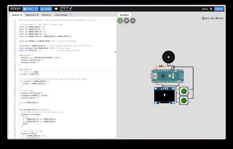First, I adapted an existing Wokwi example to display an “up” arrow going from bottom to top of screen.