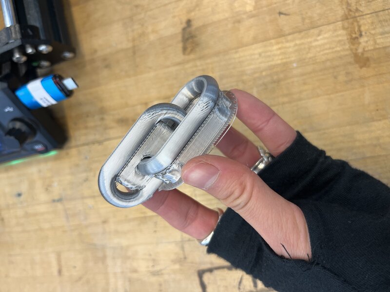 I learned how to load filament into the Prusa printer and loaded in this nice silver filament to match my chain. Here’s a photo of the Prusa hard at work: