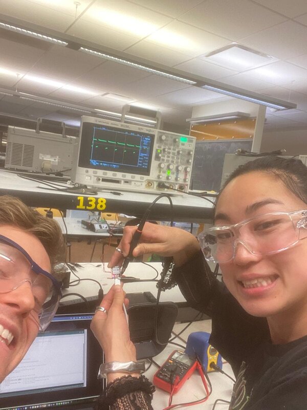 Alan and Nik showed a bunch of us how to use an oscilloscope. It was helpful, but there were many buttons and I didn’t touch any of them so I didn’t really internalize as much as I would have liked.