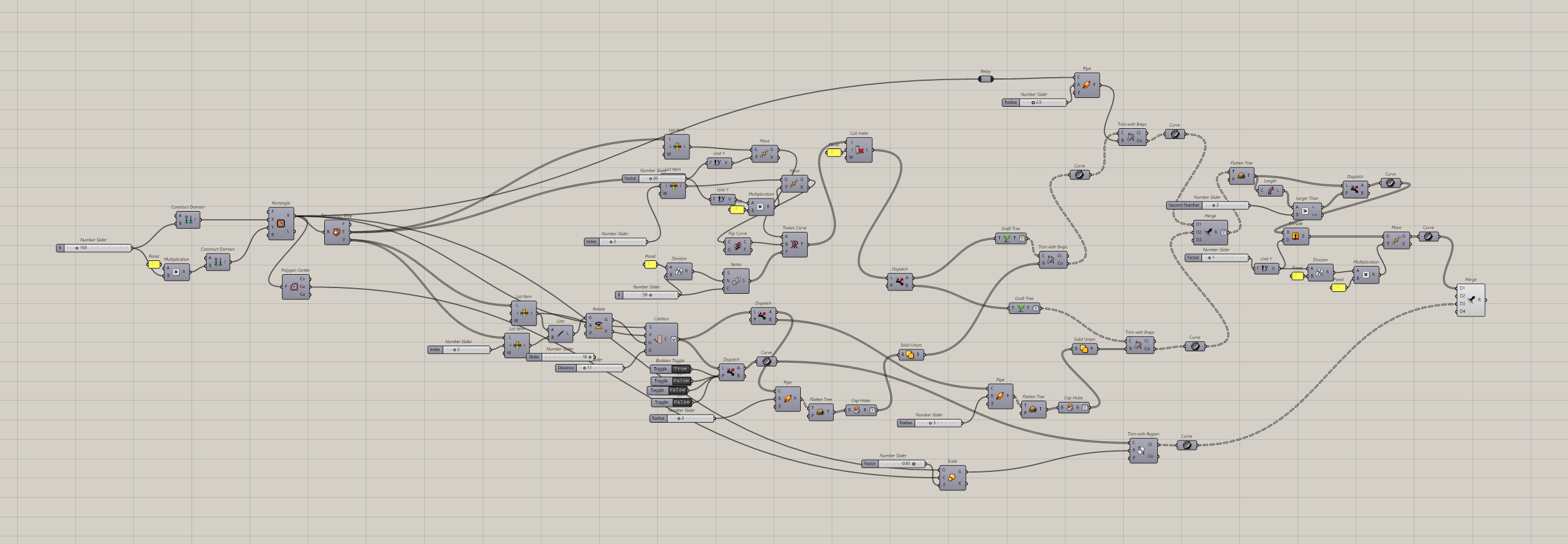 I used Rhino and Grasshopper to generate various flexure pattern iterations, testing different geometric configurations to achieve the desired bending behavior. Through multiple design versions, I found that only the first and third patterns in the first row met my expectations for controlled elastic deformation. The tilted cutting lines required careful adjustment of the flexure patterns to ensure proper alignment and functionality. A critical consideration was monitoring the edges to verify that the cutting lines and flexure patterns would not interfere with each other or get cut off during fabrication.