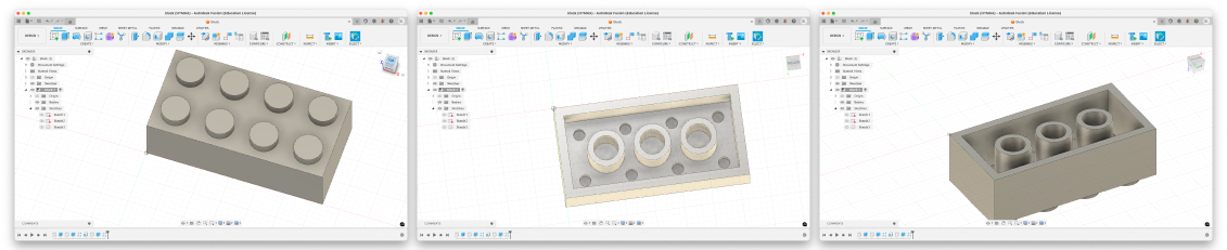 I designed a LEGO block using Fusion360, focusing on precise dimensions and assembly features.