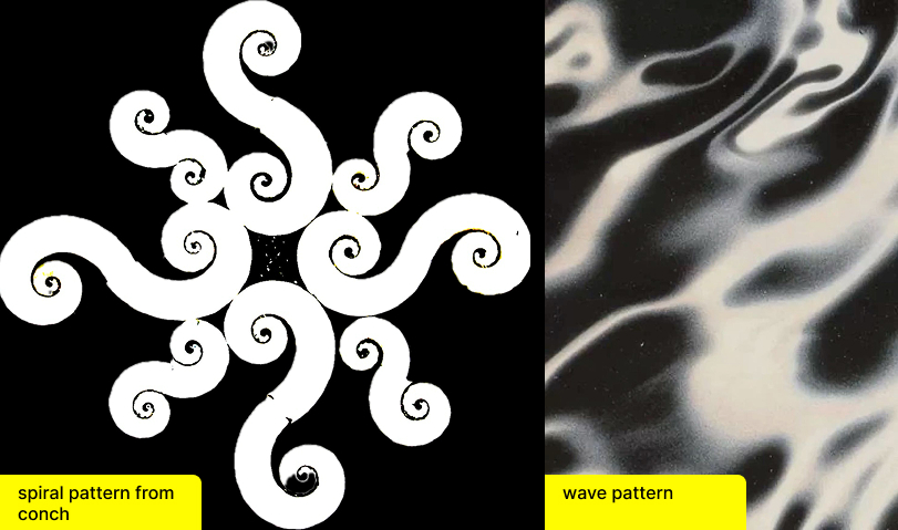 So I shifted the goal toward generating patterns inspired by nature. I used images of conch shells and ocean waves and converted them into blackâandâwhite gradient images.