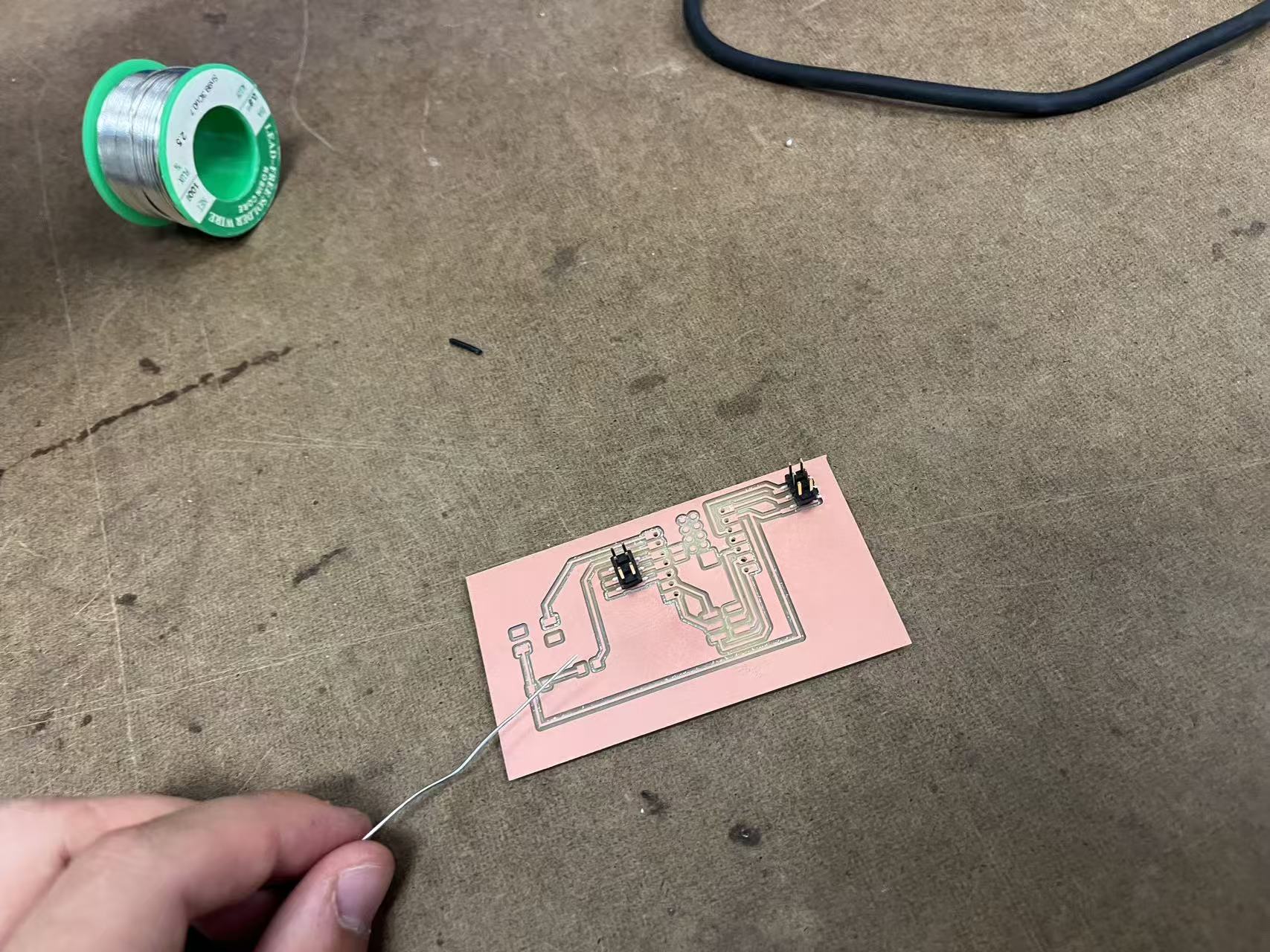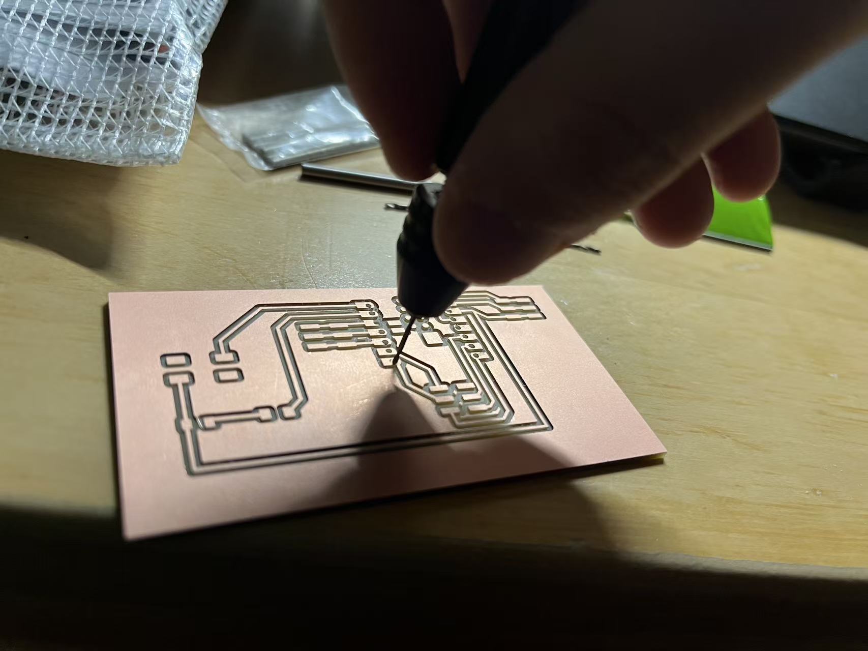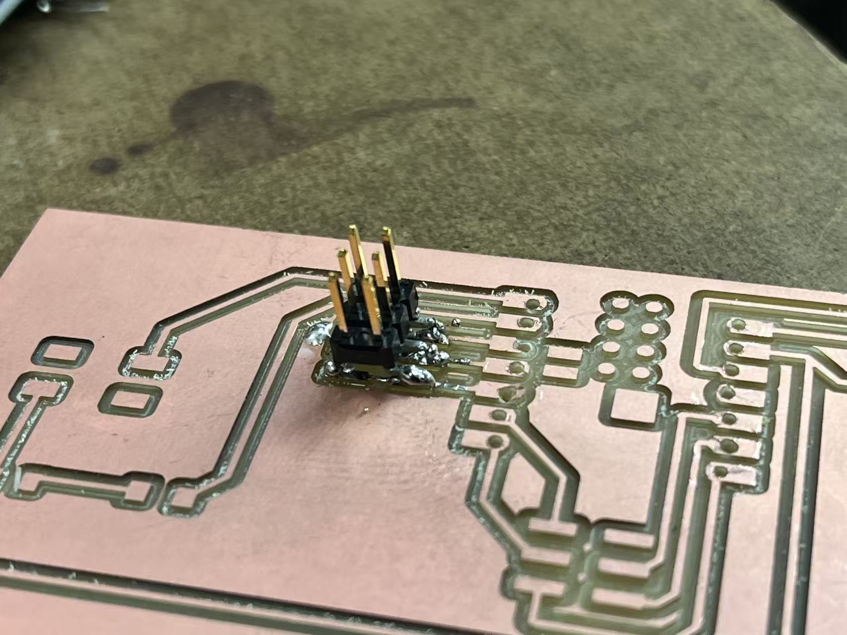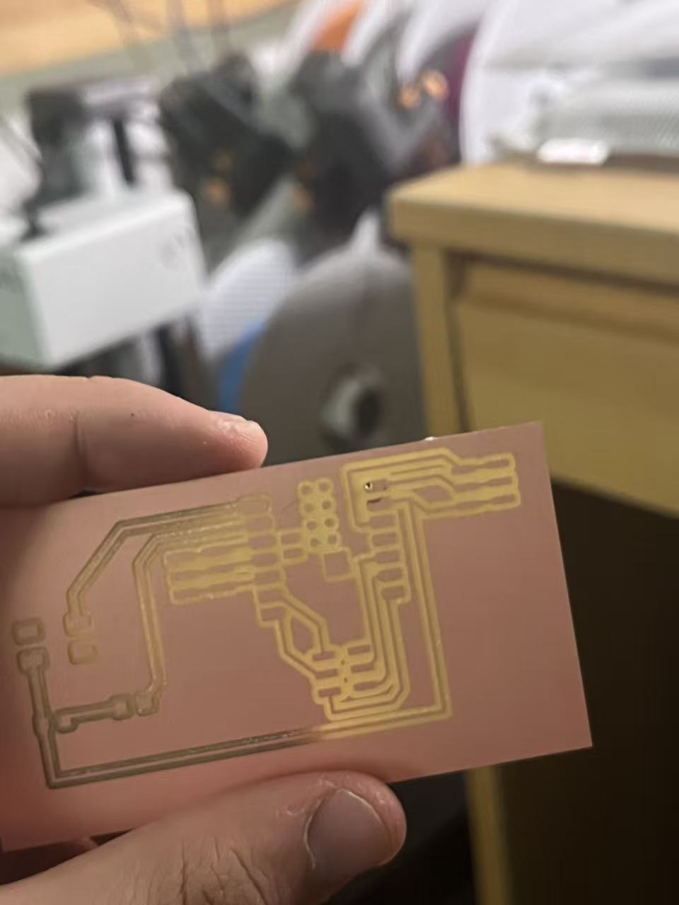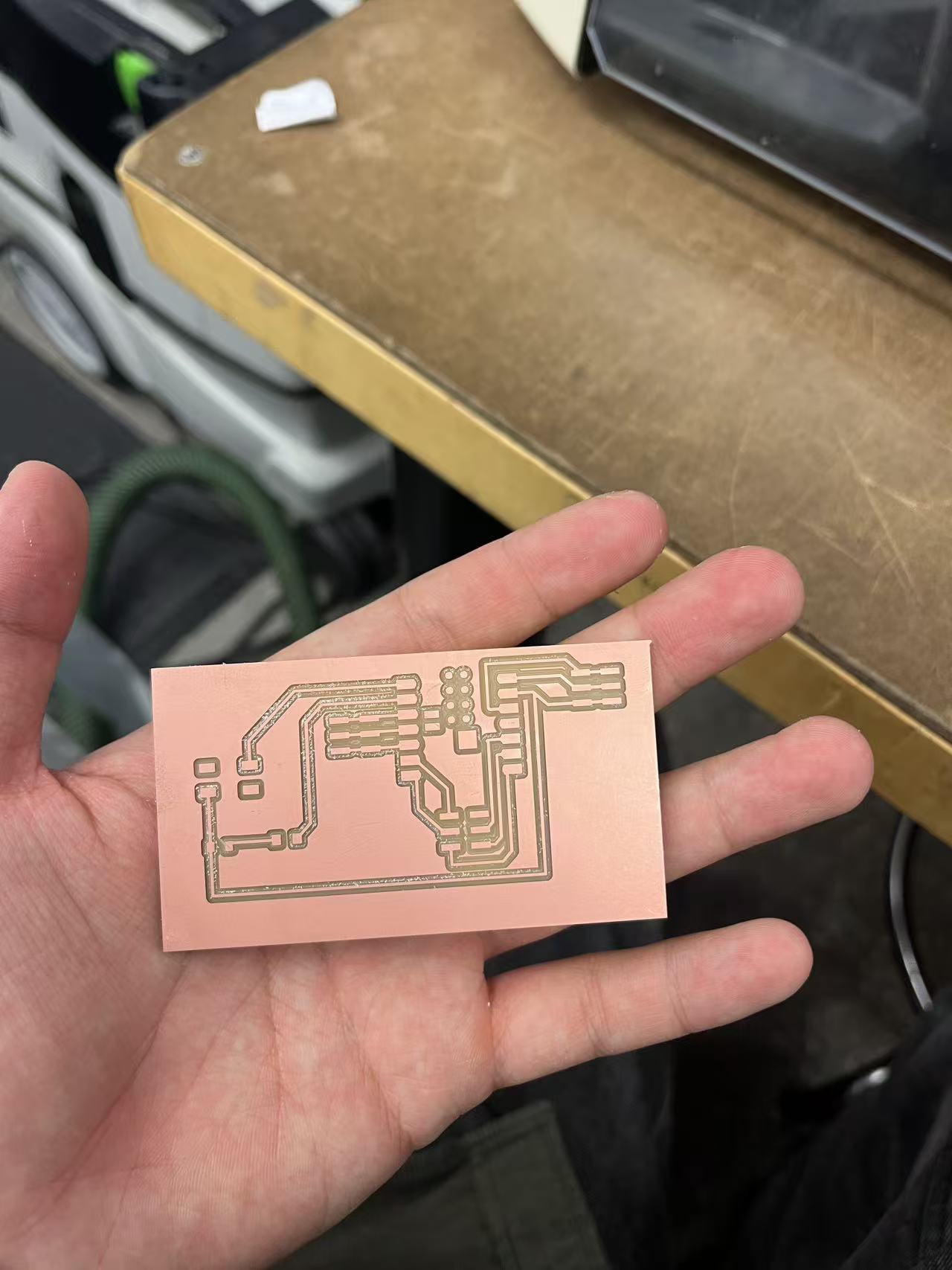 I tried to mill my own microcontroller board. I failed multiple times—poor Z-zeroing, worn bits, traces peeling during cleaning, and a couple of shorts from copper dust. After re-leveling the sacrificial layer, replacing the 1/64" tool, slowing feed, and increasing clearance in CAM, the board finally milled cleanly. I deburred, checked continuity, then soldered the components and verified power, reset, and USB/UART communication.