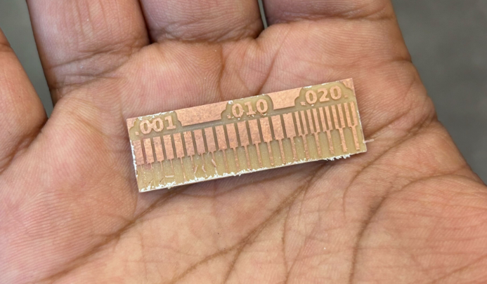 We ran a design-rules check for our in-house mill: measured trace/space and clearance using a calibration ruler, then confirmed what reliably cuts on our copper stock with 1/64" and 1/32" tools. In parallel, we exported a reference PCB (Gerbers/NC drill) and submitted it to a board house to compare finish, mask, and solderability.