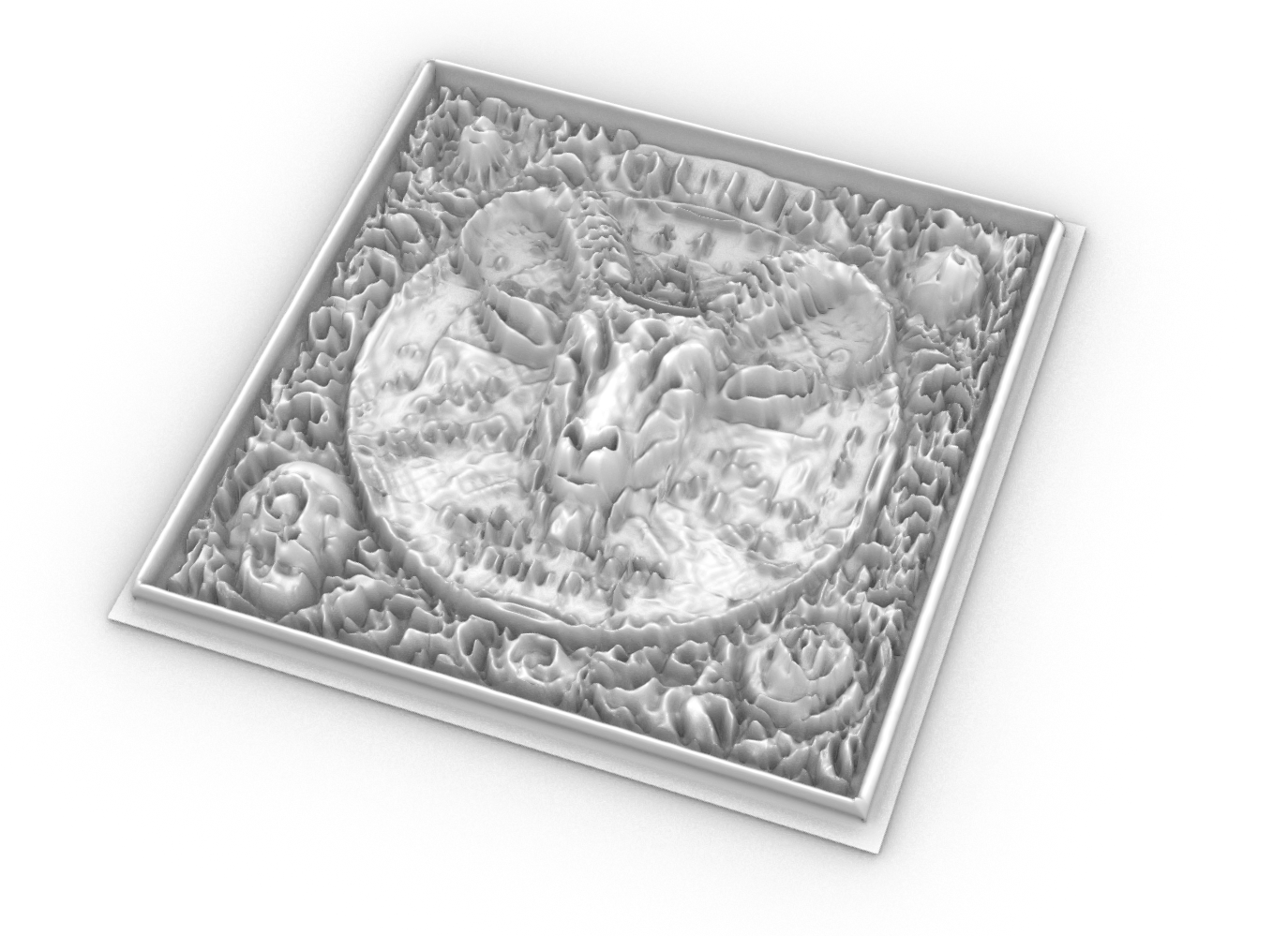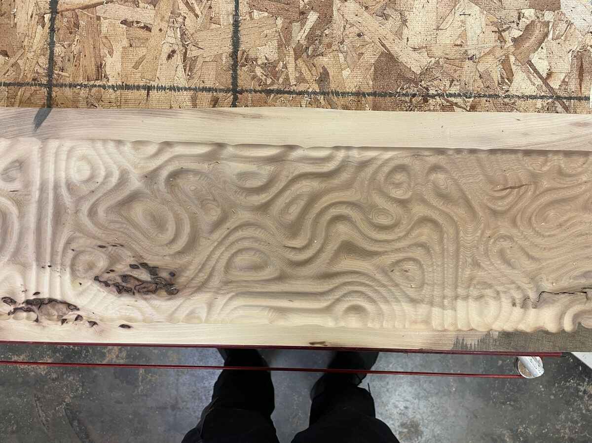 I explored generating more sculptural surfaces by converting a grayscale heightmap into a 3D engraving. While the results produced interesting depth and organic forms, the surface ended up too rugged for the final Ouija table aesthetic. Still, the study helped us understand how grayscale values translate to physical CNC depth.