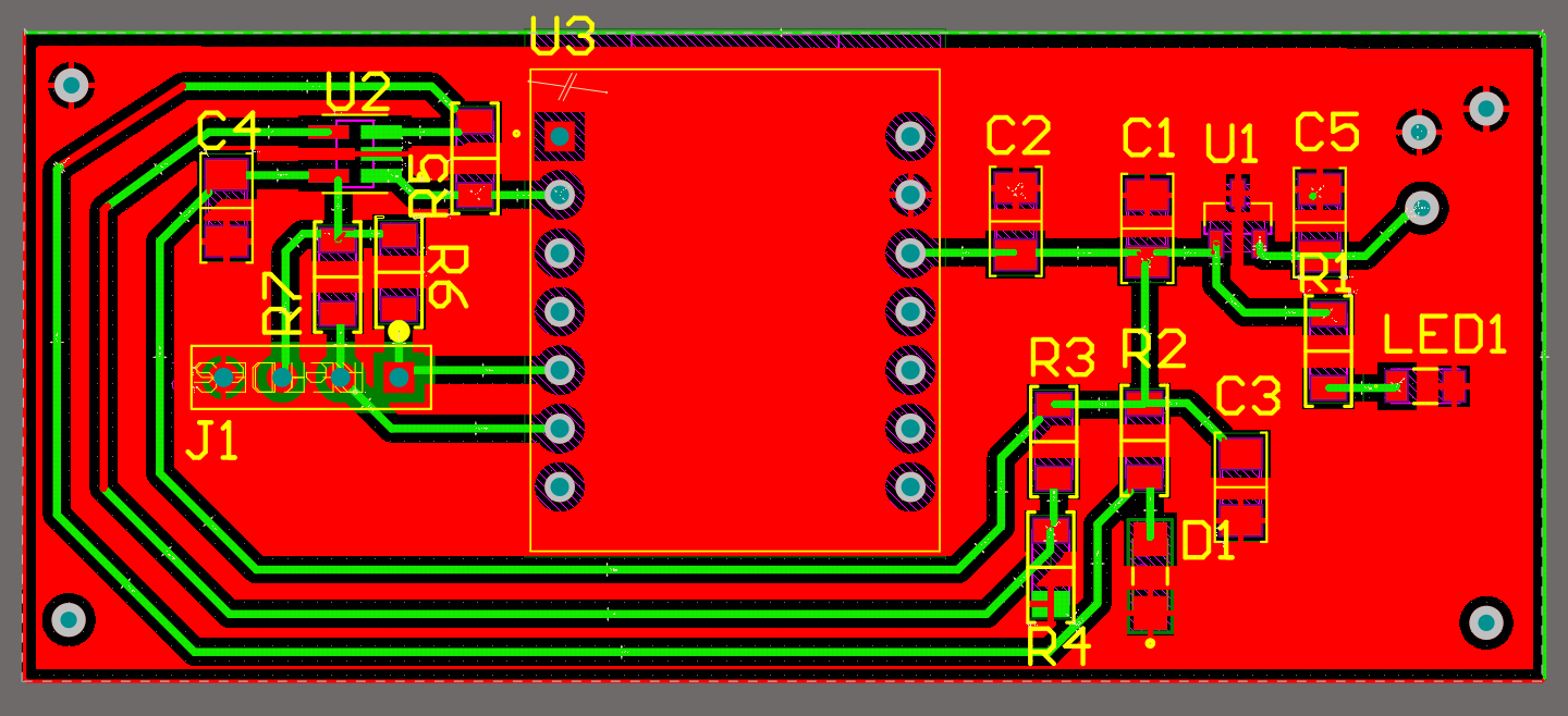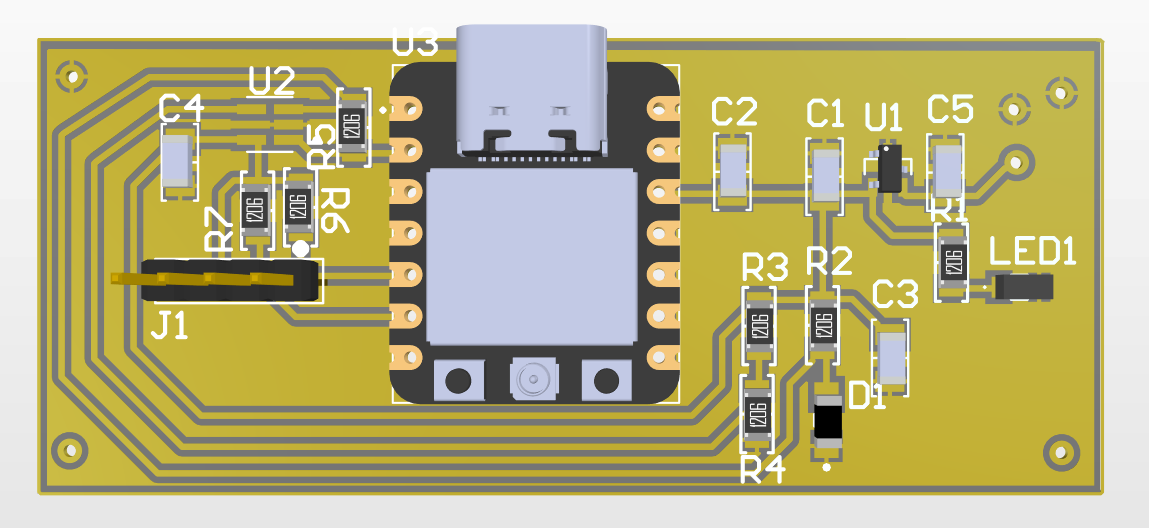 This week is a continuation of lap timer project from last week, moving from design to production. I started by refining the board schematic and layout (cleaning up traces and adding mounting holes). I also corrected the input logic on the ESP32, which had been reversed.