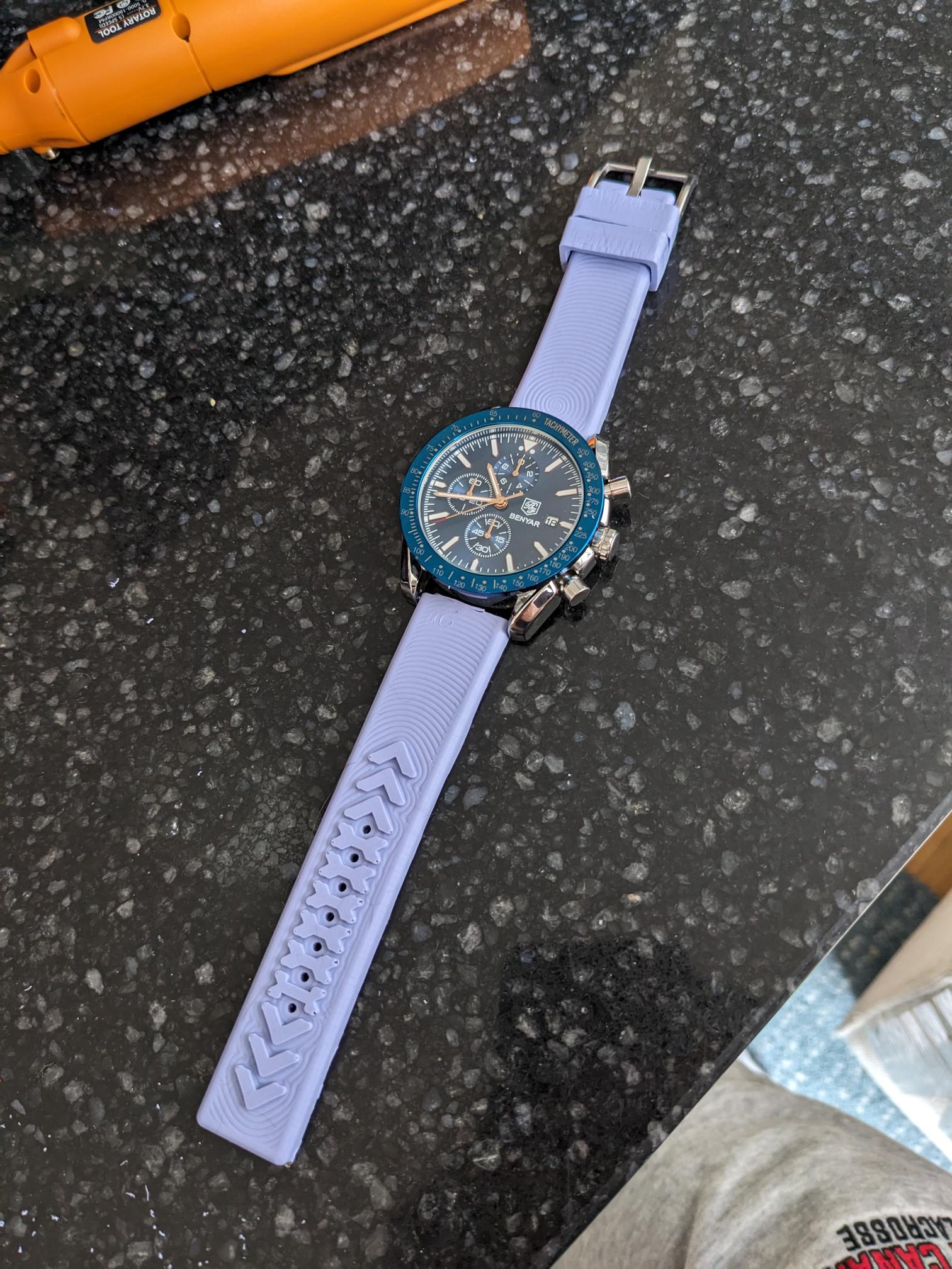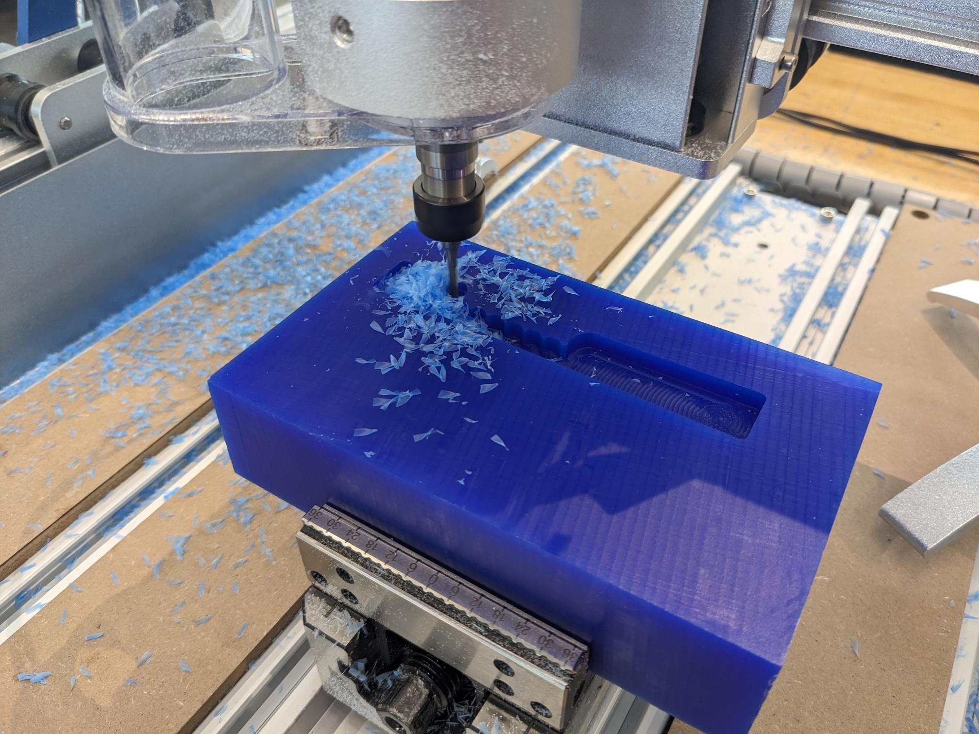 The milling process went quite smoothly for me, for the most part everything went well alhtough I did lose one of the watch band holes that I figured I could just re-add post casting. The main thing to point out however, was that I must have set my Z-height on the ball end mill just a tiny bit lower than when I did my flat 1/8in pass. This resulted in the ball end mill patterning what would otherwise have been a flat surface of the watch band. The pattern does look kind of cool though, so that not a problem, but it does make it obvious what mold making technique was used to cast these parts.