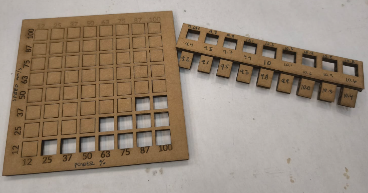- Characterize laser cutter performance (focus, power, speed, rate, kerf, etc.)