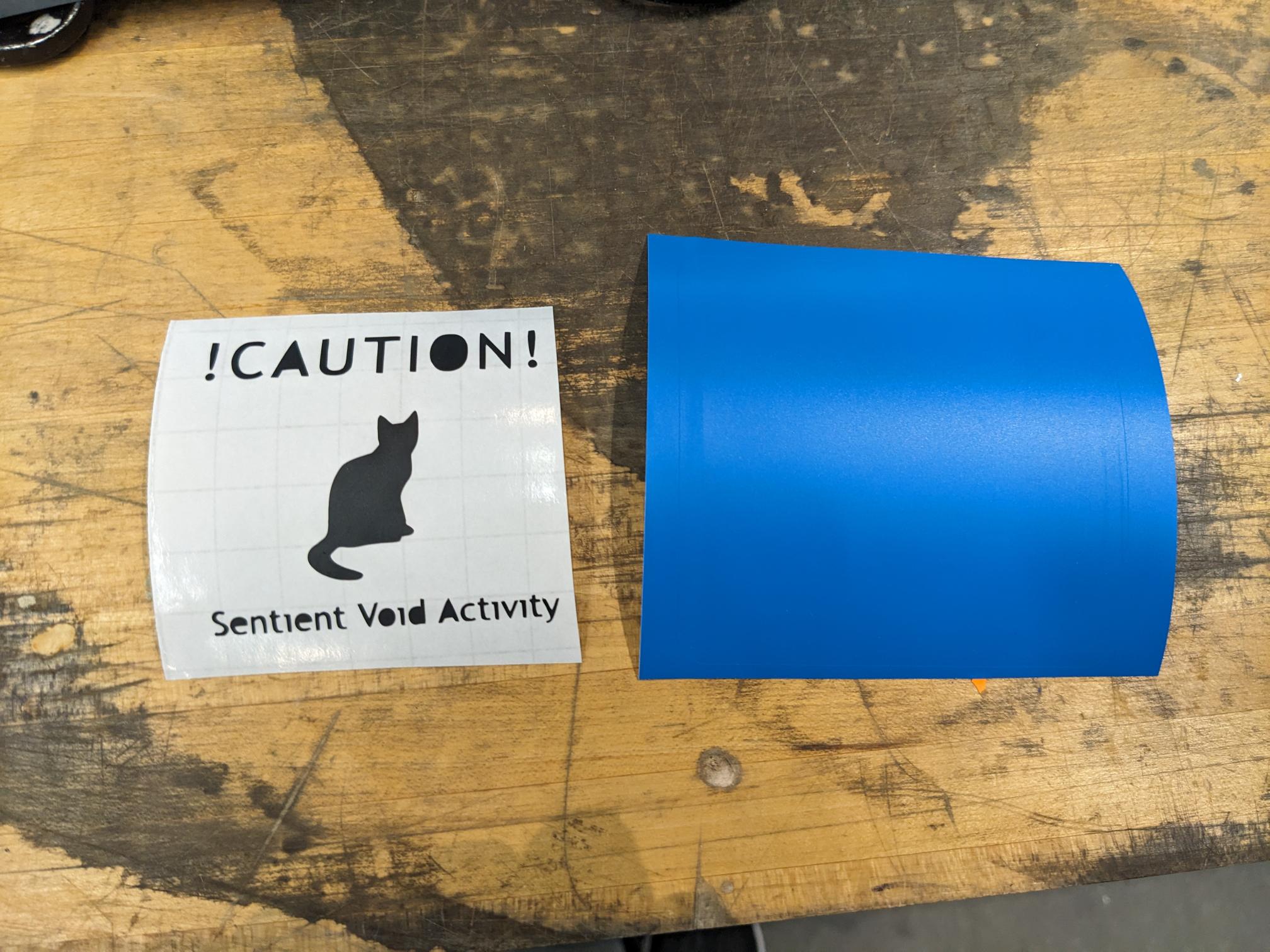 I wanted to make stickers on the Cricut vinyl cutter, and I had a funny idea to make a sticker referencing my black cat. The sketch took a bit of time to make because I had to trace a silhouette, and I ended up changing how I was going to do the background and text once I got some time to play with the tool and figure out how it works. Below the CAD sketch is how the stickers turned out. The blue square is cut out of permanent vinyl, so it is acting as the base layer with a simple square cut around it. The black text and cat image are transferred onto it using the transfer tape and I am surprised at how well it worked (I lost the small dots like I thought I would which is no big deal). I expected I would also have to pick small letters off with tweezers, but it was actually pretty seamless! Also, I couldn't quite find the setting in the Cricut software that would cut out the center of closed letters like O and A, but for my first exposure to a vinyl cutter I really liked using it and I am very happy with the results.