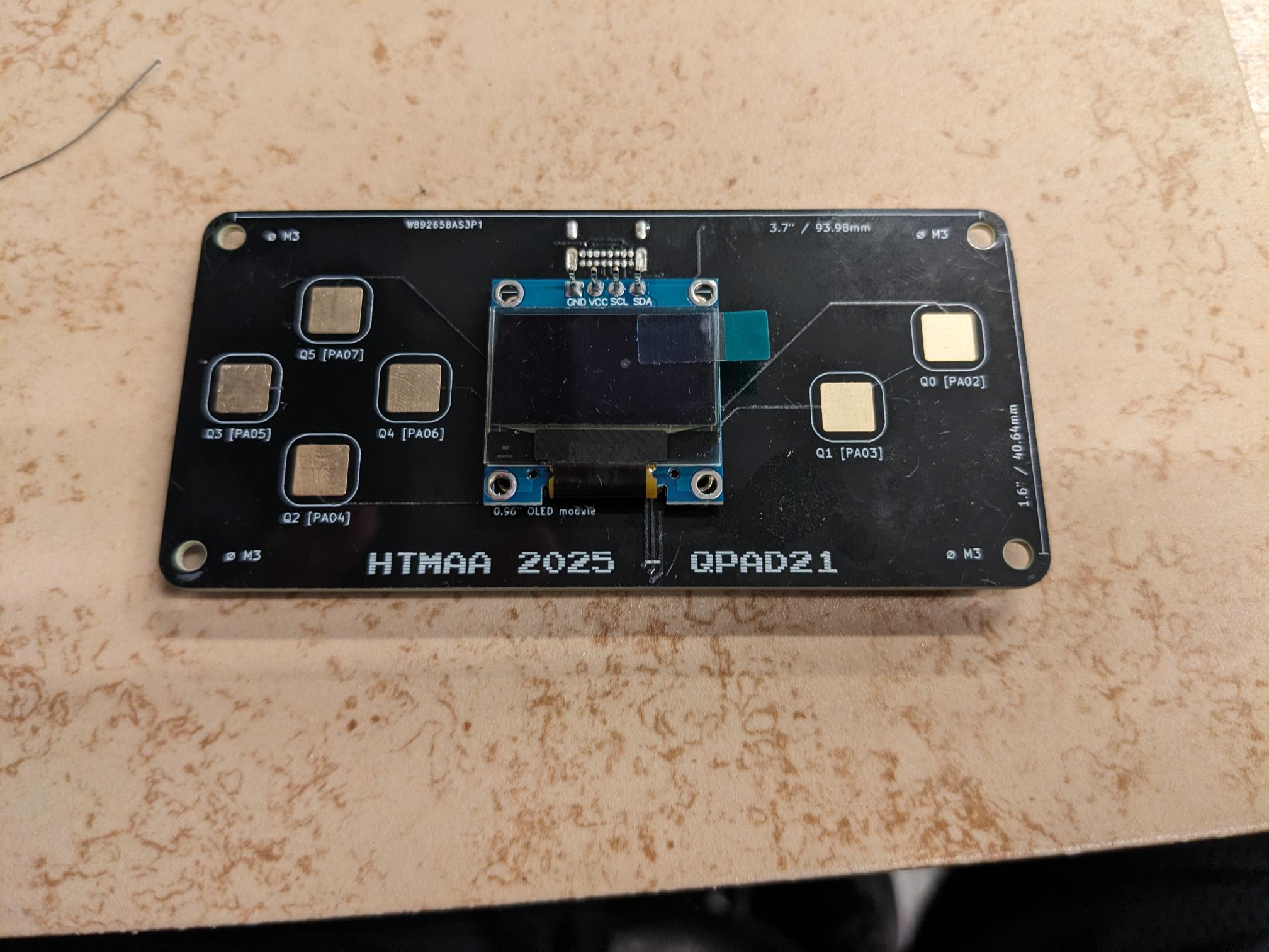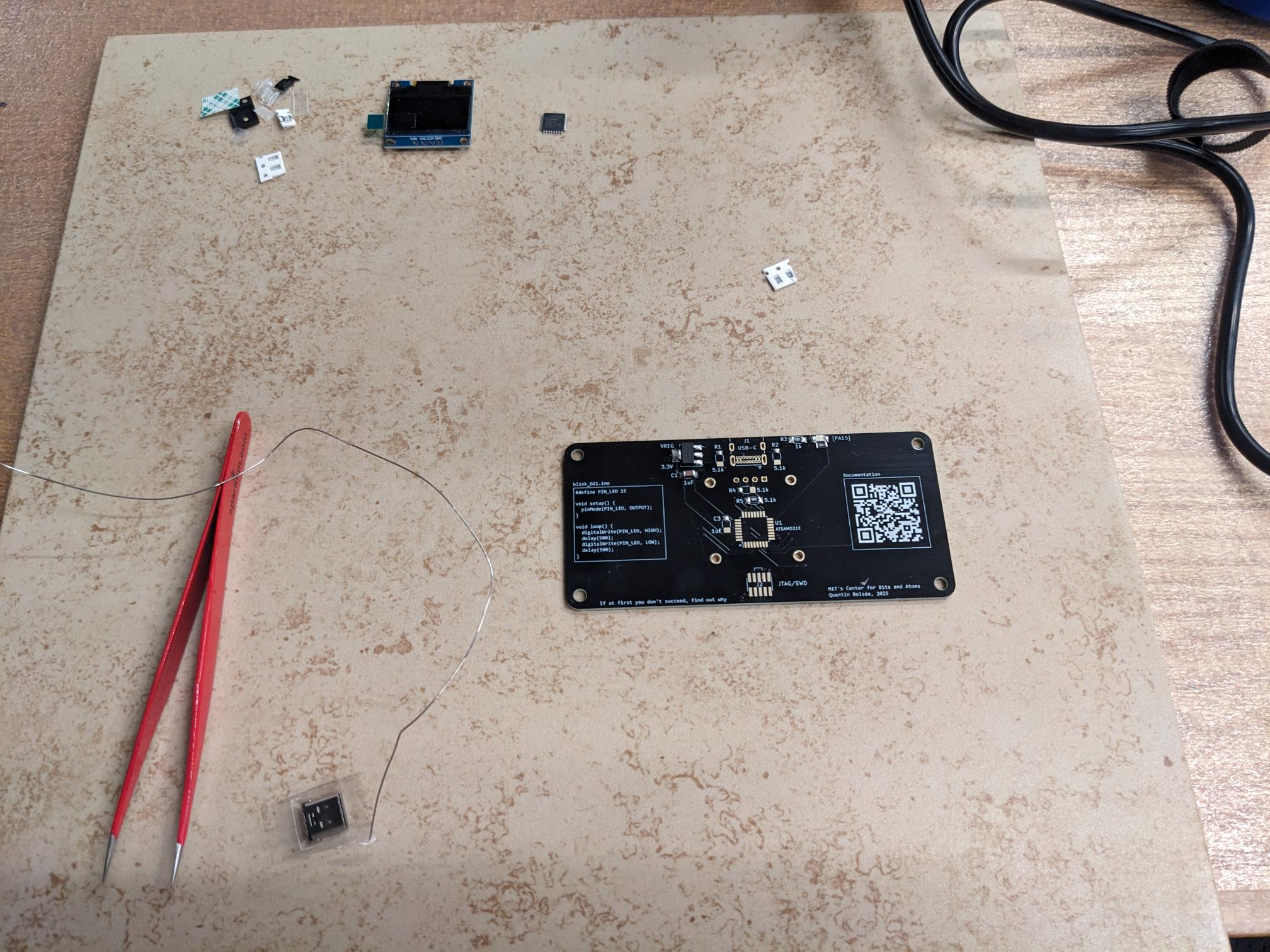 As mentioned in the previous section, we had a lab session the consisted of soldering together a game pad with a microcontroller, an LED indicator, a small screen, and in my case a USB-C port. For the most part I didn't have much trouble since I have a lot of experience soldering and the components were on the larger side. However, I have not used solder flux too often and I did create a few bridges when mounting the SAMD21. These were quite annoying to fix and I was hoping the shorted pins were not connected, but after consulting the data sheet I found they were significant. But, with enough patience and reworking, I was able to fix all of my shorts, and everything worked as intended. The initial image below shows my board with only a few components soldered, followed by pictures of the front and back of the completed board.