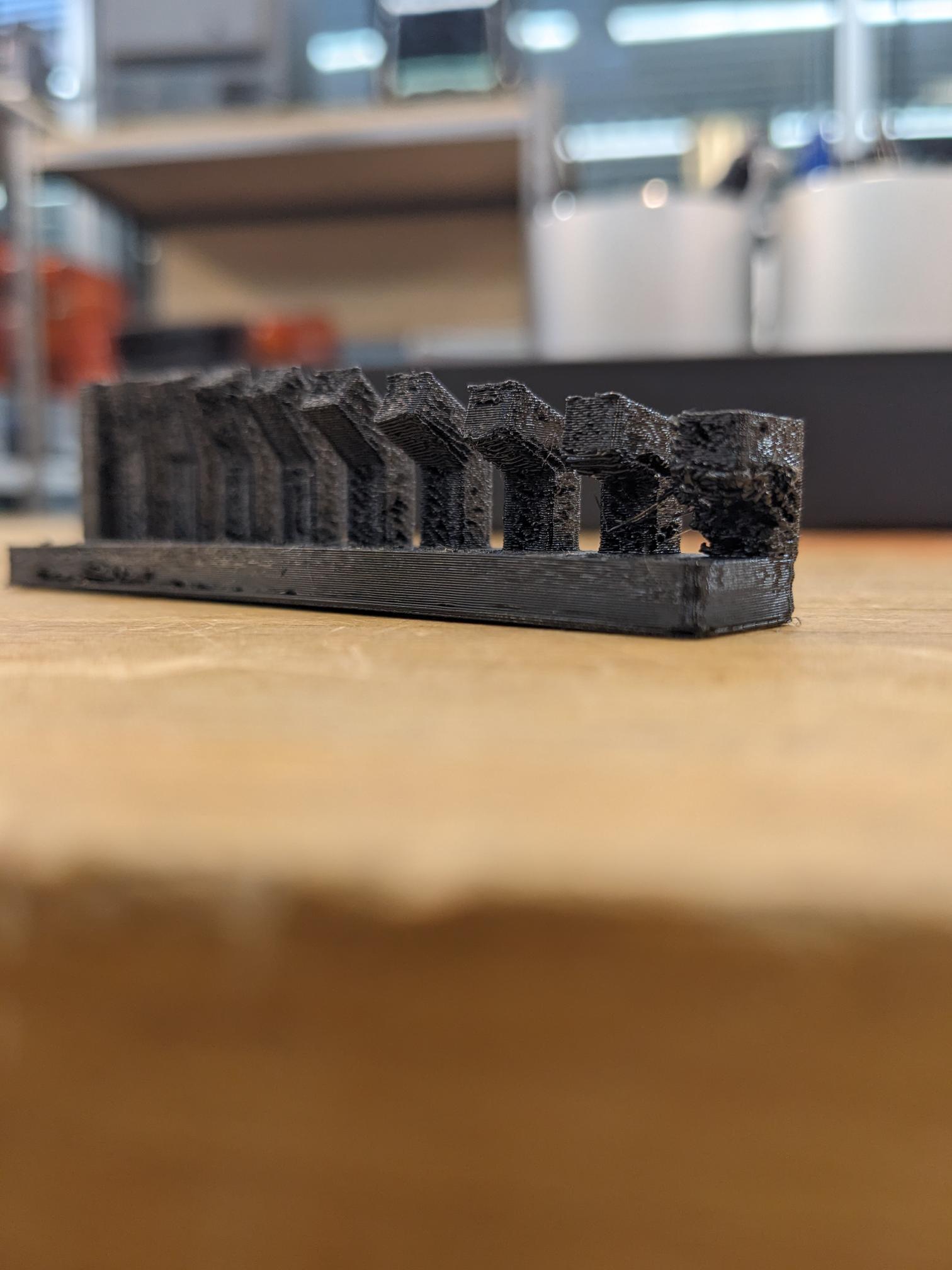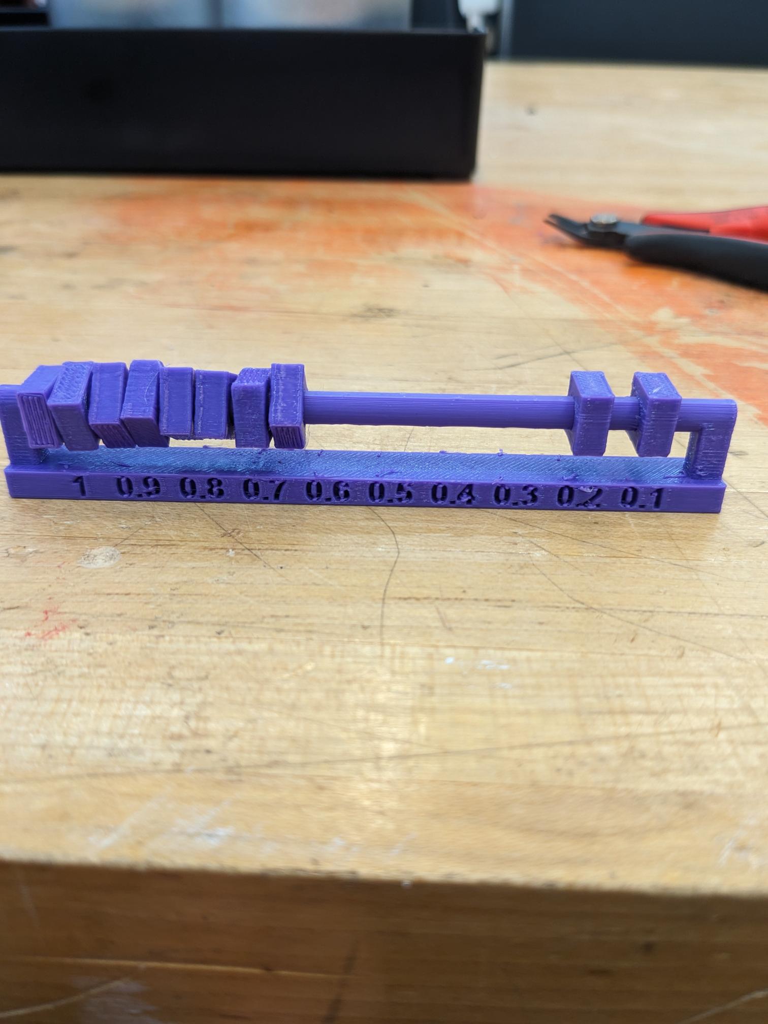 In class we discussed a number of different structures that can be used to test how prints should be designed. For example, if a part is being made without supports there is only so far that the filament can go before it begins to sag. This limits the distance that prints can extend out over space. Other limitations involve the tolerances between parts that are meant to fit together, build angle without supports, and wall thickness. This work was conducted by various members of our section and details can be found on our CBA site here. The design files we used for the prints are found here as well. It is important to note that these tests can be kept in mind as a general rule of thumb, but the exact performance will depend on the filament type and the printer settings used to print the actual part. As such, for critical parts some of these rules may need to be repeated. Images of the design rule prints are seen on our CBA section site with details on the printers and slicers, but a few example pictures are also seen below.