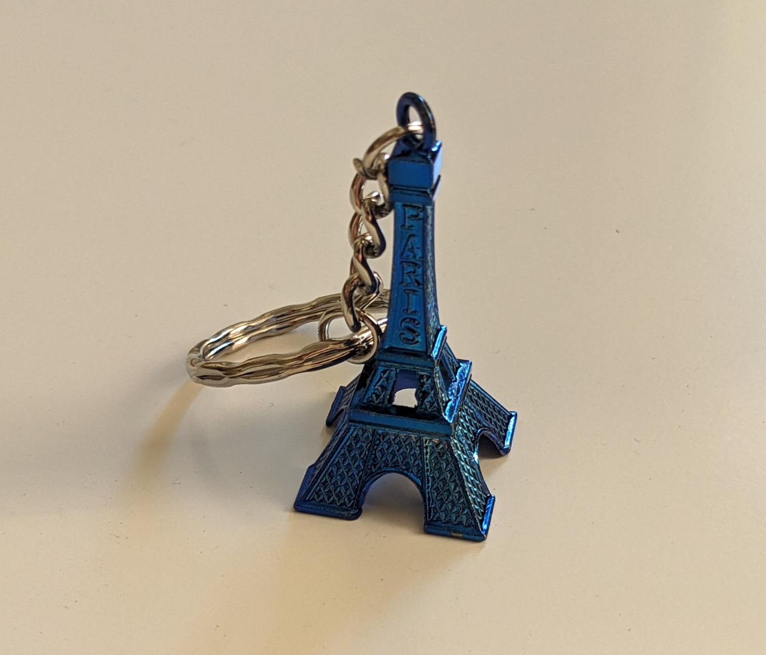For scanning an object, we were introduced to a number of different techniques and tools that could be used to scan 3-dimensional objects. I don't know if there are scanners in the shops, but I decided that I would try one of the phone apps. I used Polycam, which uses pictures of the same item from as many angles as possible to stitch together a 3D object/mesh. I tried to target a little Eiffel Tower keychain that is on the order of maybe 25mm x 25mm x 40mm. I didn't know if this app is intended to scan object this small with fairly intricate details, but it actually did a pretty good job of picking up a lot of the surface texture of the beams. It did run into some challenges with the keychain part as a bit of weird geometry was picked up around the connections, and the app did include some of the surrounding surface that the tower was placed on as well. But overall, for a free account and an app that can be readily downloaded this was a pretty easy way to scan an object. Unfortunately to actually export and .stl file I would need to upgrade to a pro account.