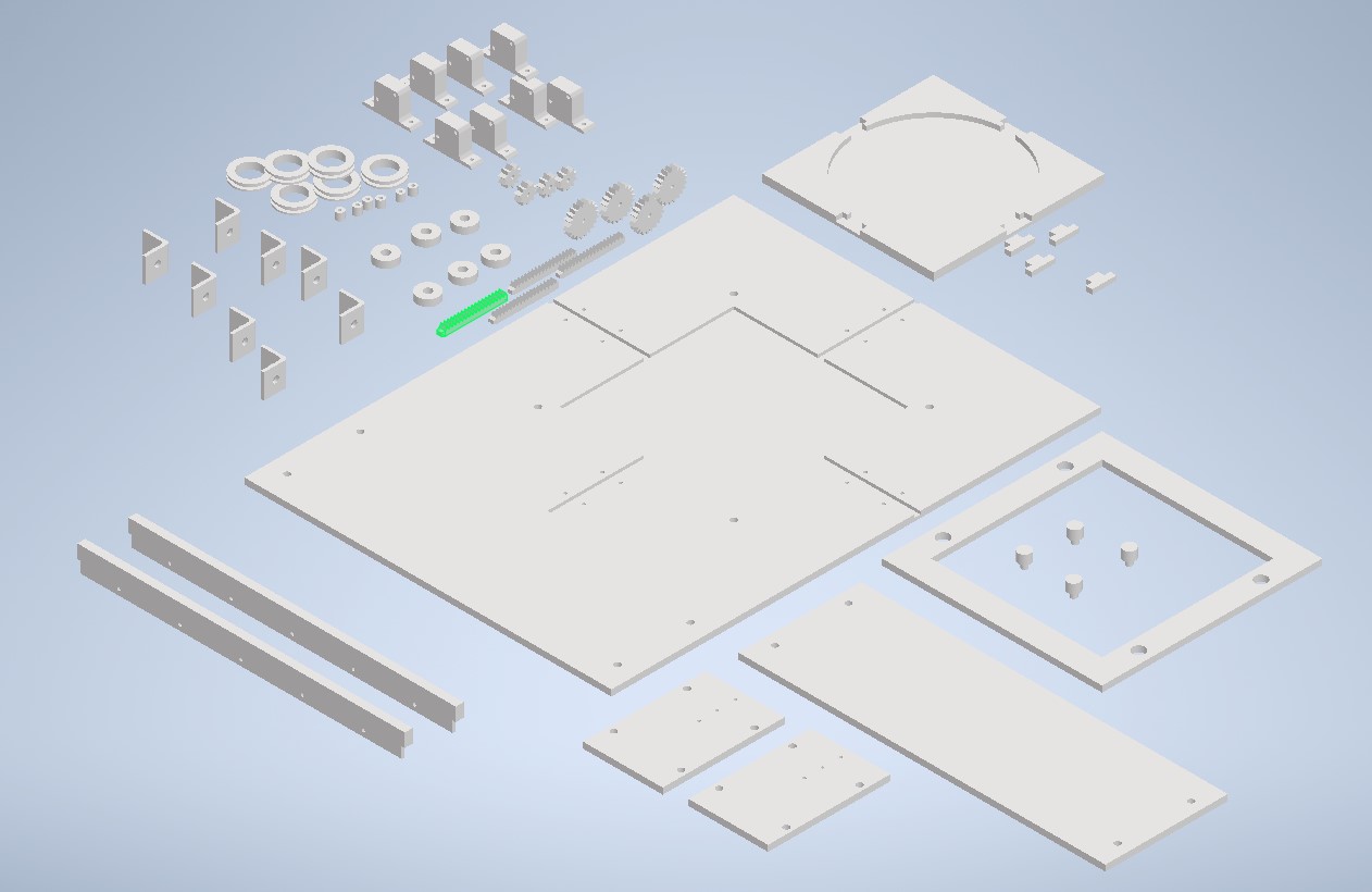 After talking with Dan about the design, we came up with a plan to handle the areas of concern I highlighted above. To handle turning the gears, he thought from the drawing the user would basically use their thumb to turn the gears from the back one. I hadn't thought about this, and at least tentatively will try that method since I can always design and print a knob if it doesn't work well. For the rail, the method I was thinking of turned out to be the simplest and that would consit of adding a protrusion on the lower part of the rail to prevent it from lifting off the ball bearing. I would then need to screw or glue on an endcap to then prevent the rail from sliding off the bearings entirely. We didn't discuss anything about the electronics, which is fine because I have a lot of space to fit them into later. Dan however did show me a scrap device that was set to be disposed of with a very nice aluminum bottom plate. It fit the dimensions I was planning for my base, so I grabbed it and will start machining it likely next week!