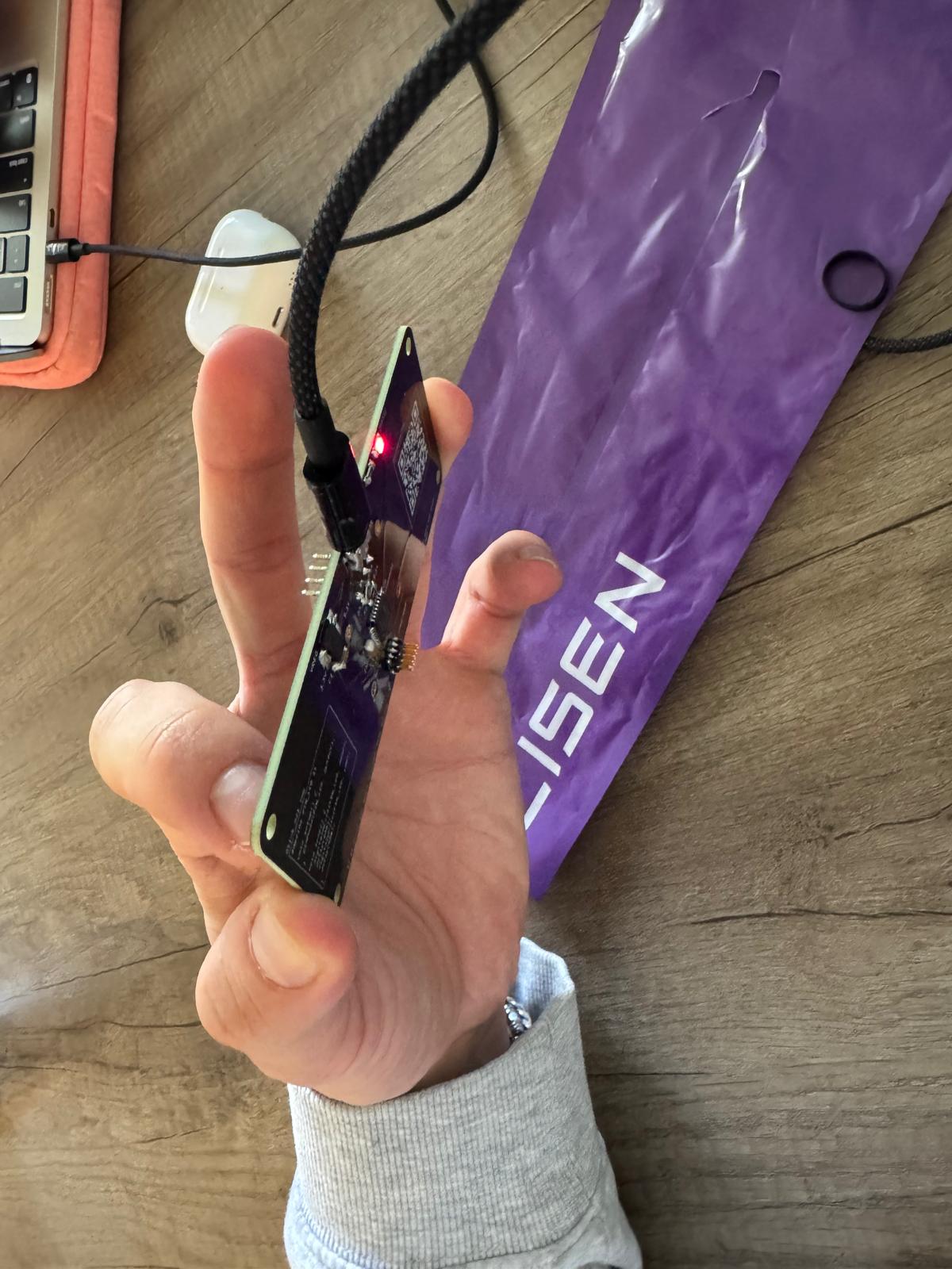 In the end, after many reiterations (it was already 10 pm!) I tested the board with Quentin (huge thanks to him - super helpful!) and everything worked fine. Here’s the finished product: