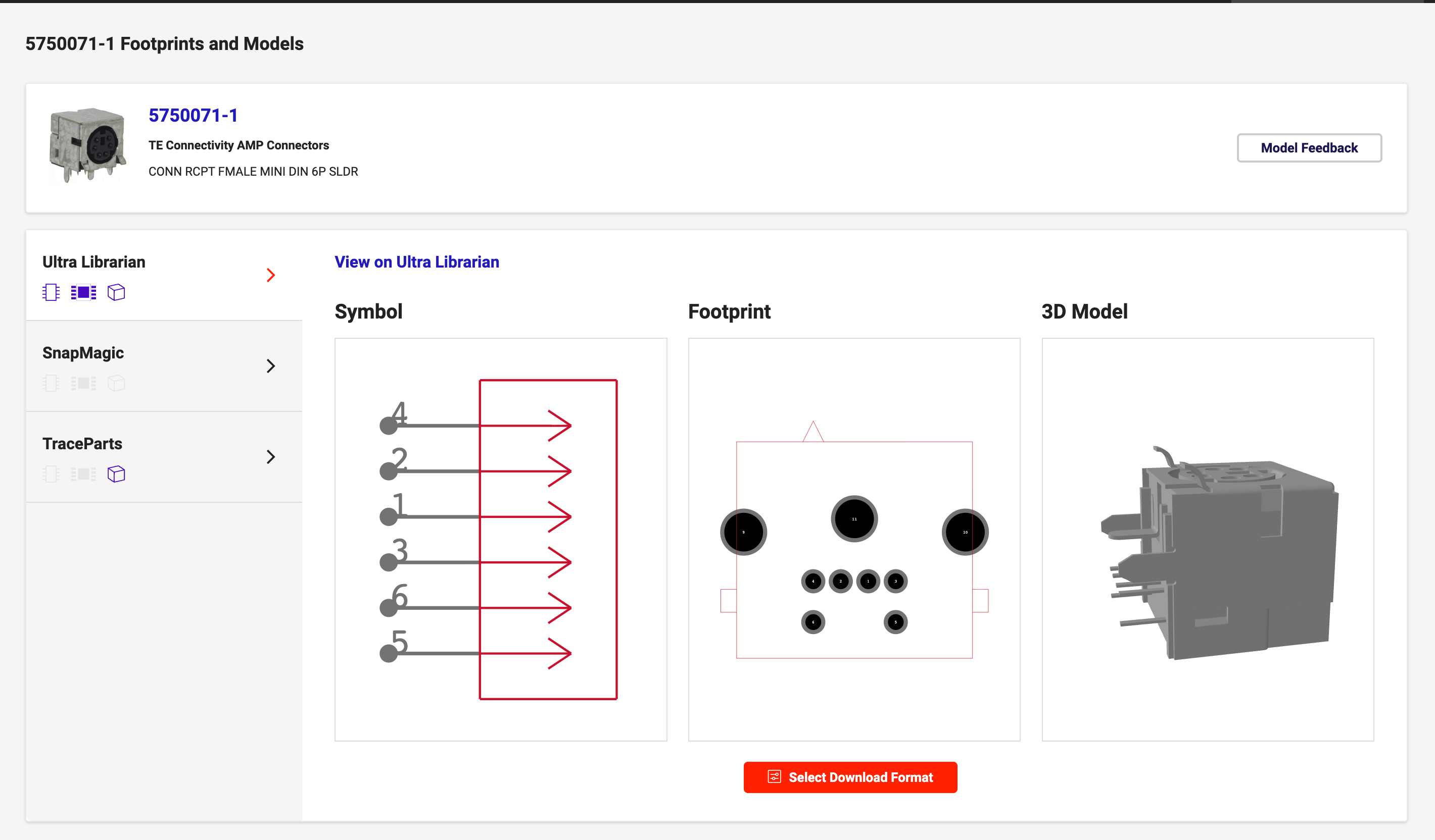 Searching for mini-DIN 6-pin connector, I couldn't find a symbol for my noname amazon connector. The closest I found is 5750071-1 from TE Connectivity AMP Connectors. I assumed it's the same as the connector I bought since it's industry standard (I've seen plenty of them on motherboards and other devices).