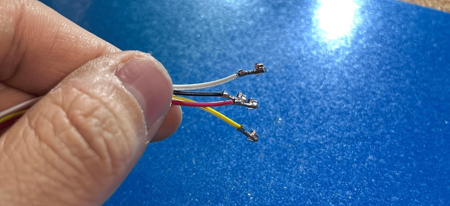 After crimping the pins onto the wires, I inserted them into the JST connector housing.