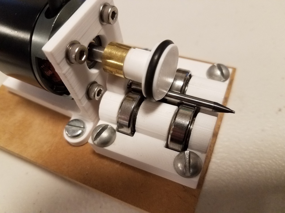 Second prototype runs with an o-ring. O-ring is one size smaller (12mm ID vs 14mm) than groove. Run with Clank at 7000 RPM. It spits the bit out the left side.Next steps: