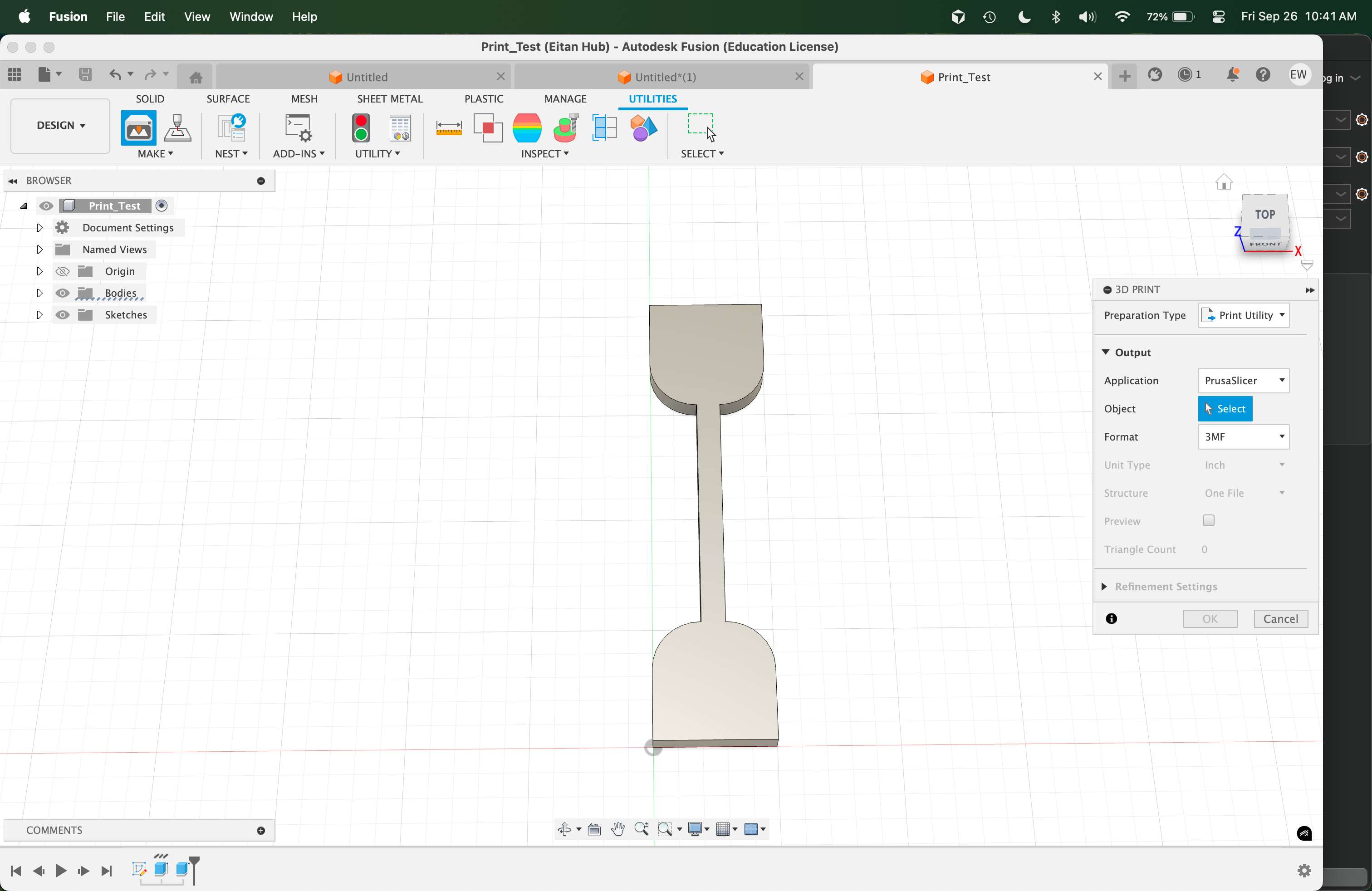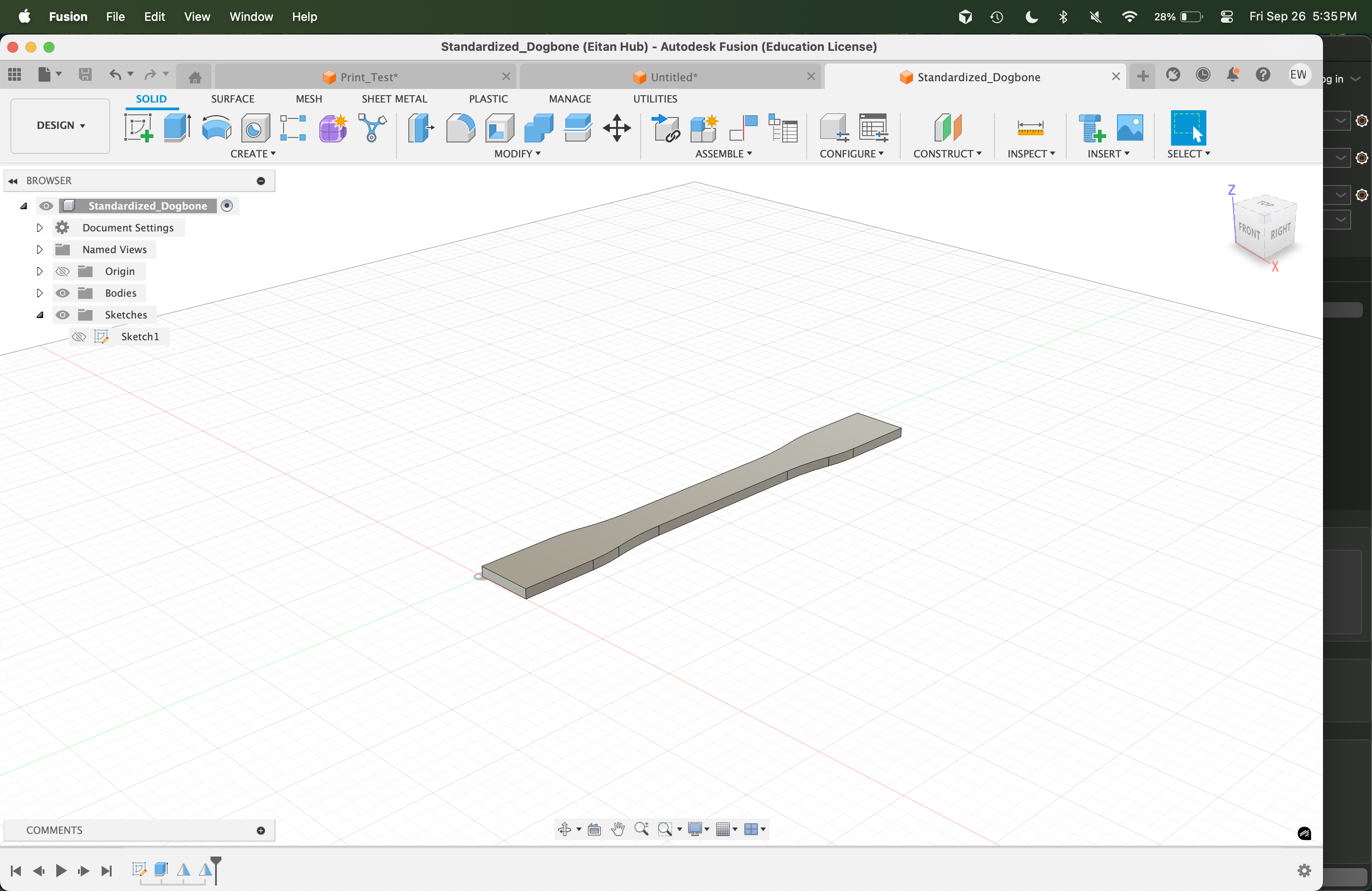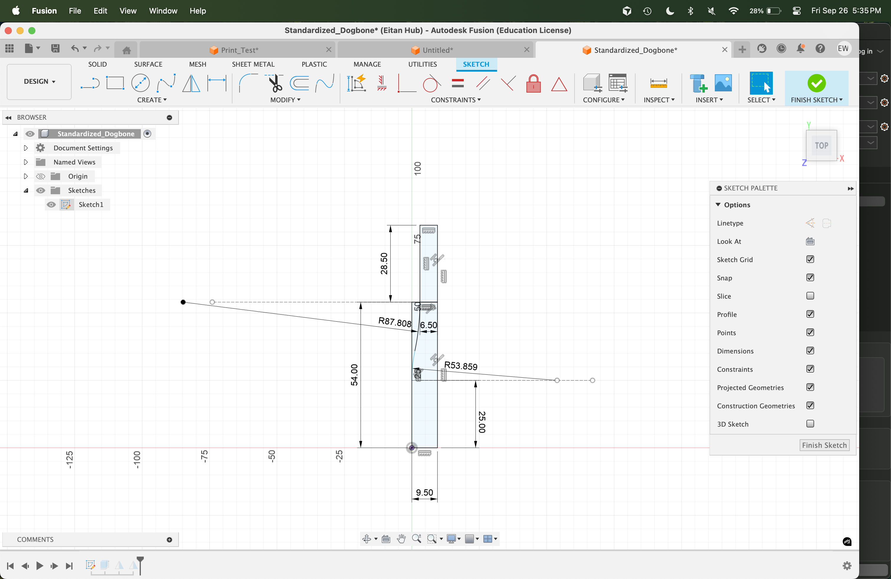 It not only failed to fully print, but they were also VERY ugly and also, as Alphonso kindly informed me, were not actually useful for testing since they were not really up to testing standards. I needed to re-create these to better fit the official sizes. Alphonso helped tremendously with this, and showed me how to use different circle radii in Fusion to get the correct taper angles.