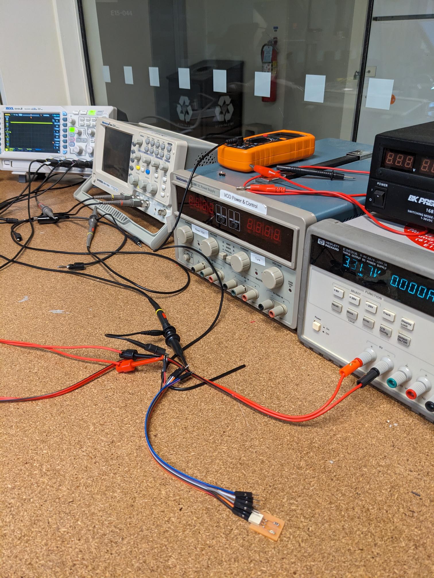 - We used the supply to send 3.3V and 5V as two different tests to the board wile the oscilloscope was conencted to the output