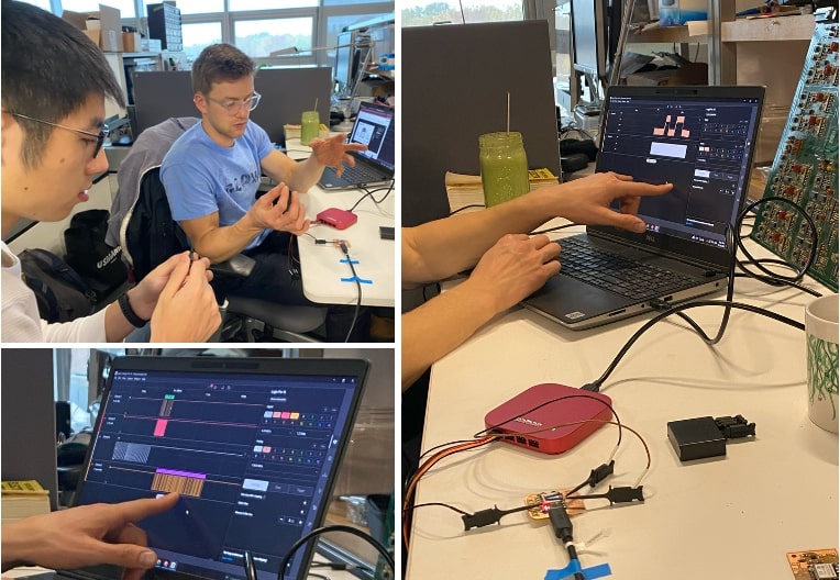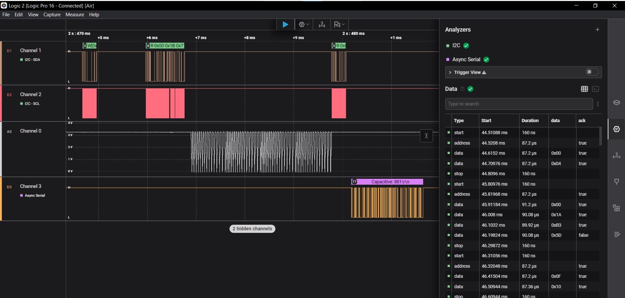 We used the Saleae Logic 8 from 043 with the Logic 2 software to capture and decode transactions